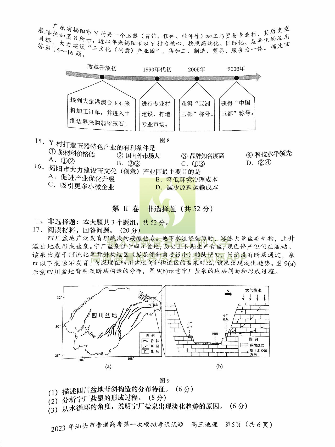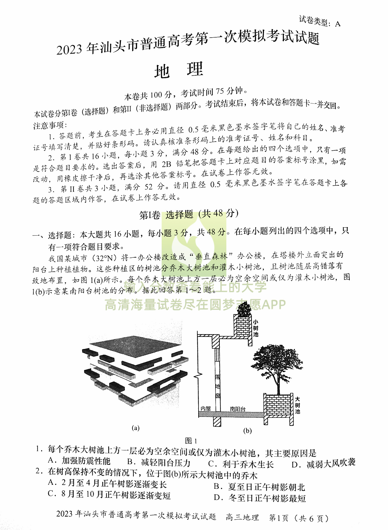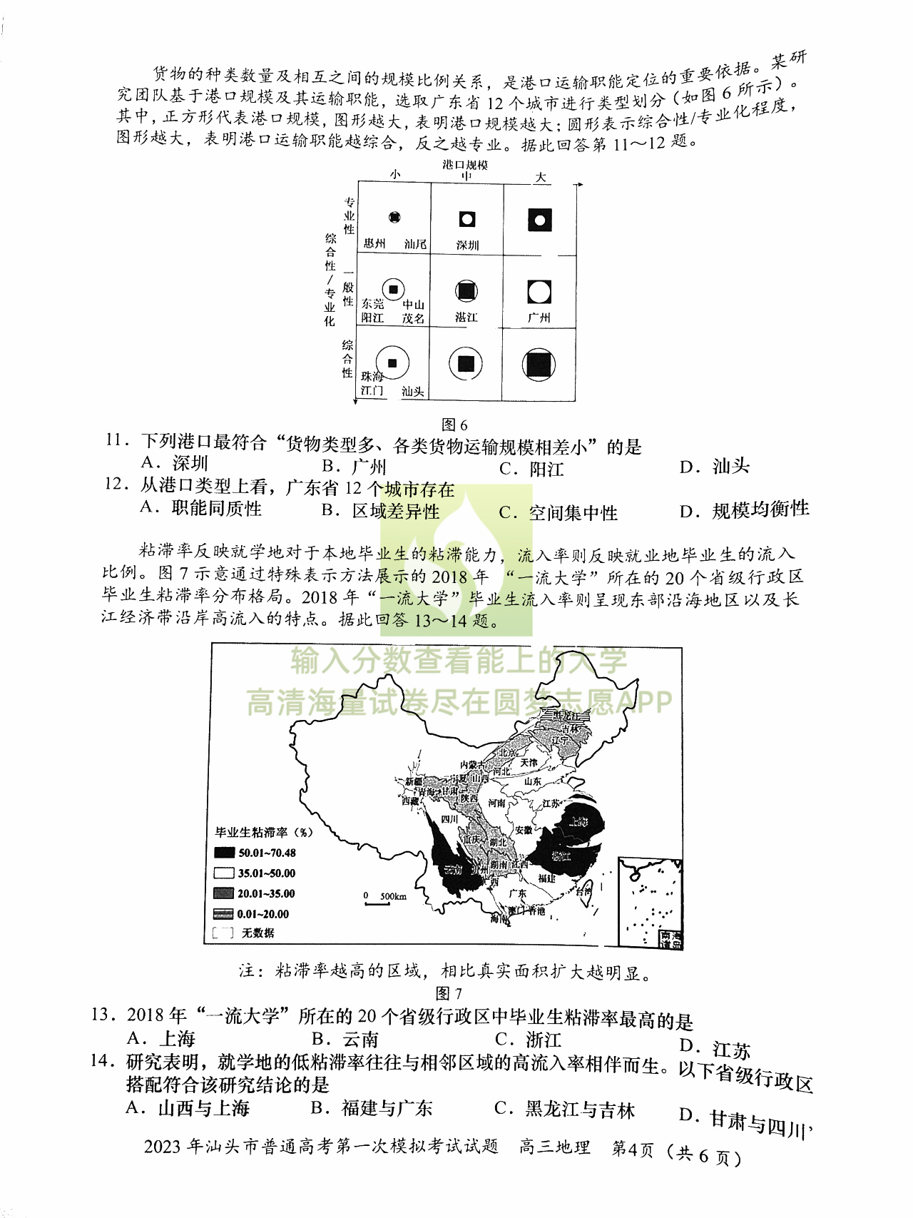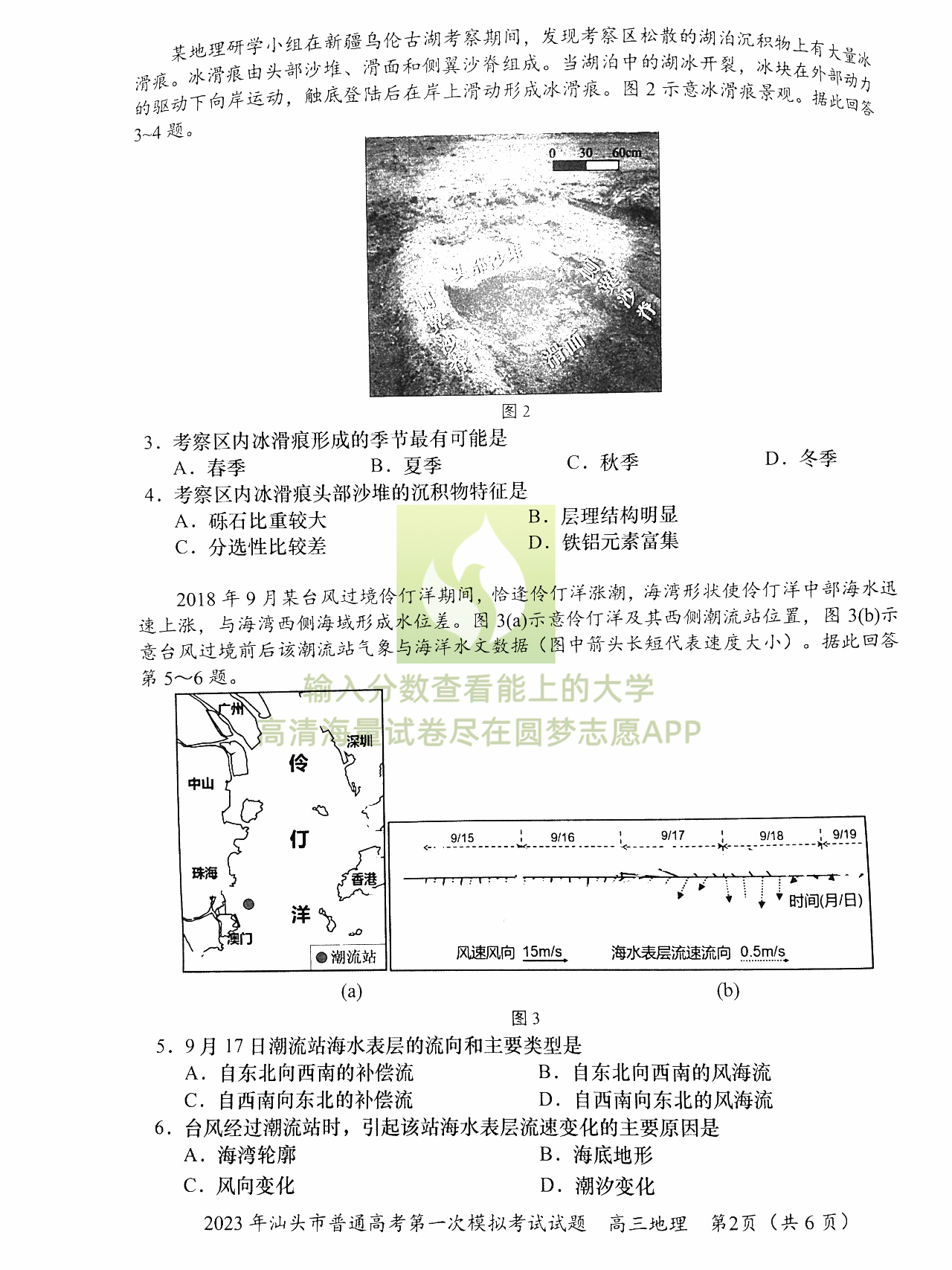 九.2023汕头一模地理试卷真题及答案解析汇总