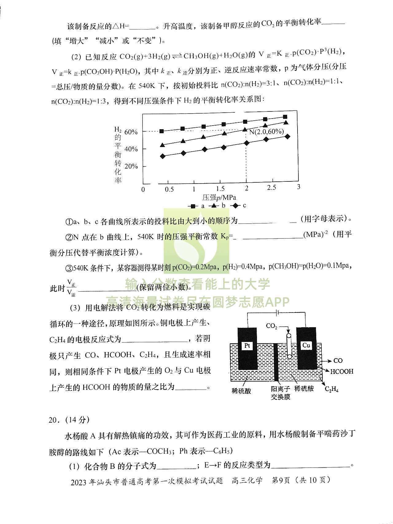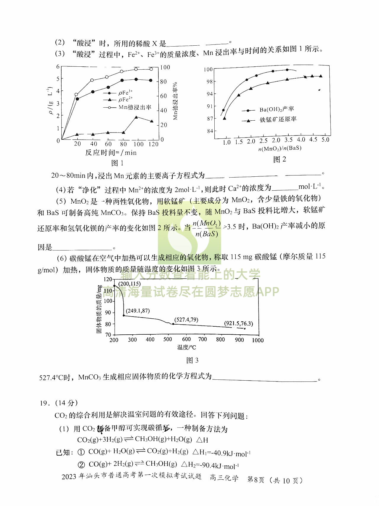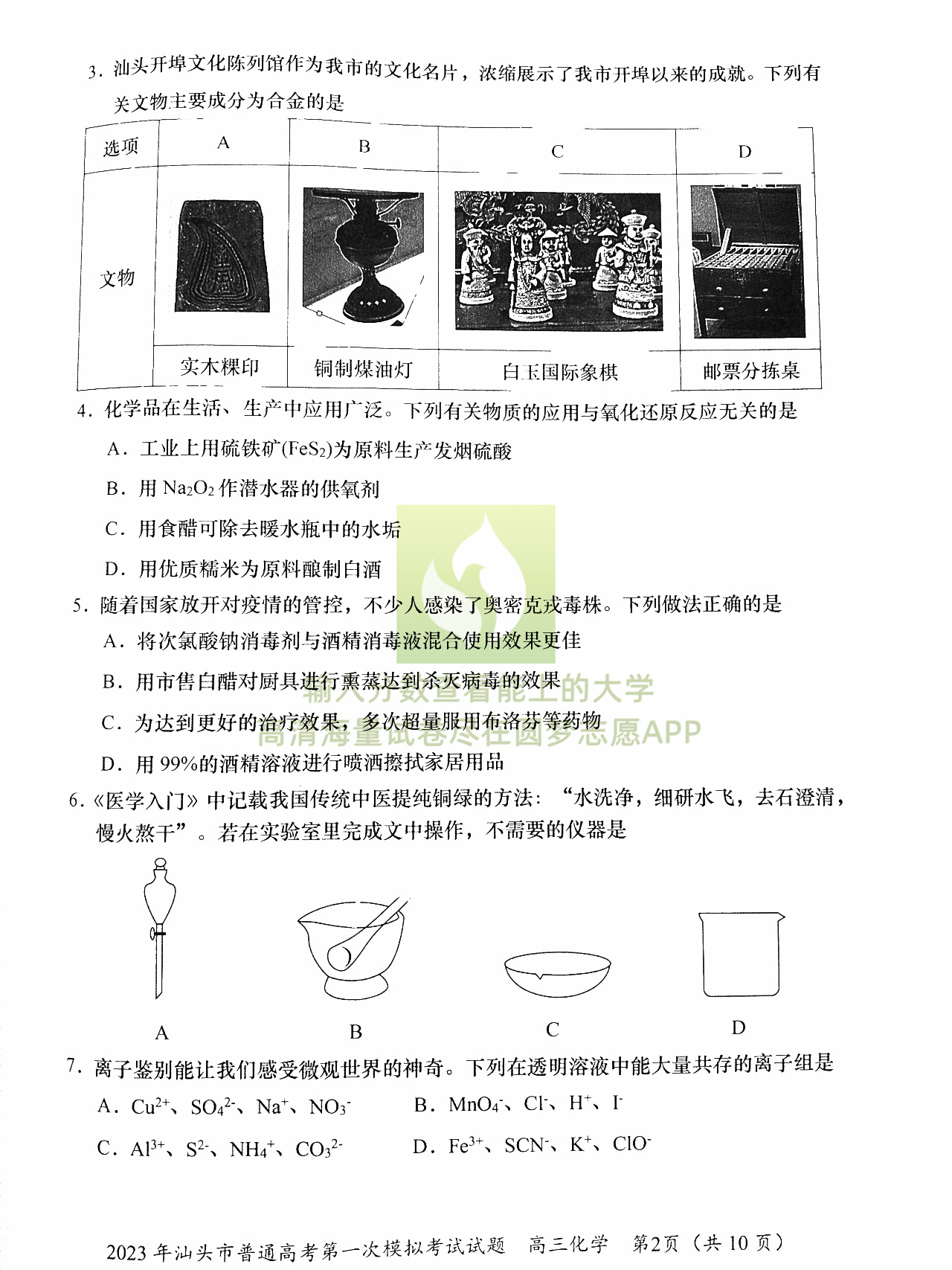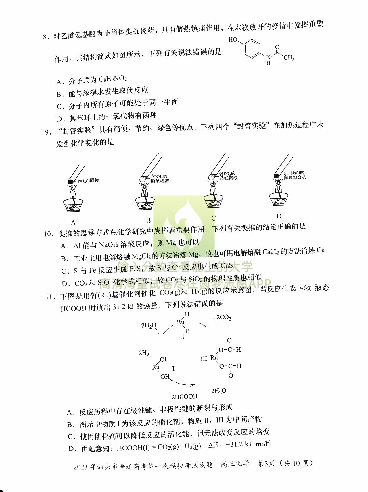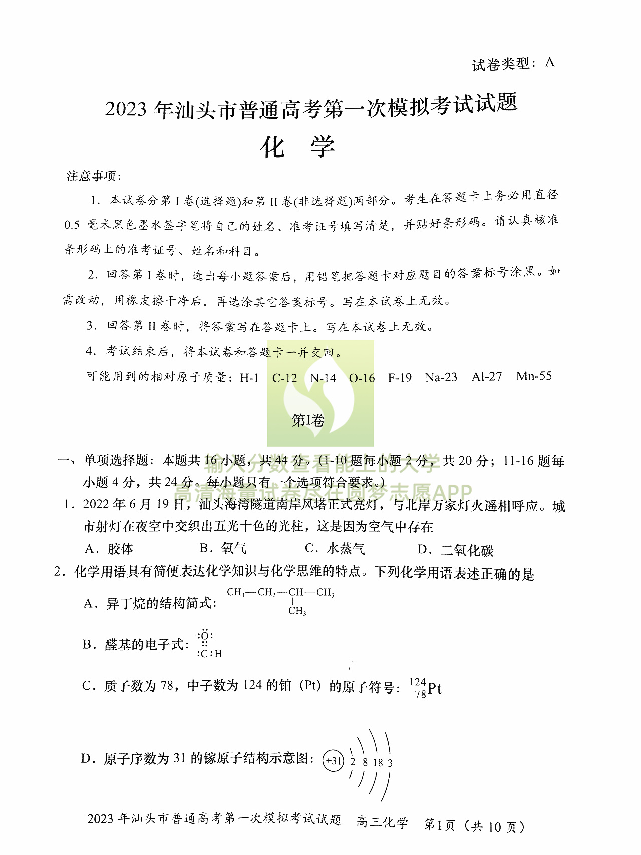 五.2023汕头一模化学试卷真题及答案解析汇总