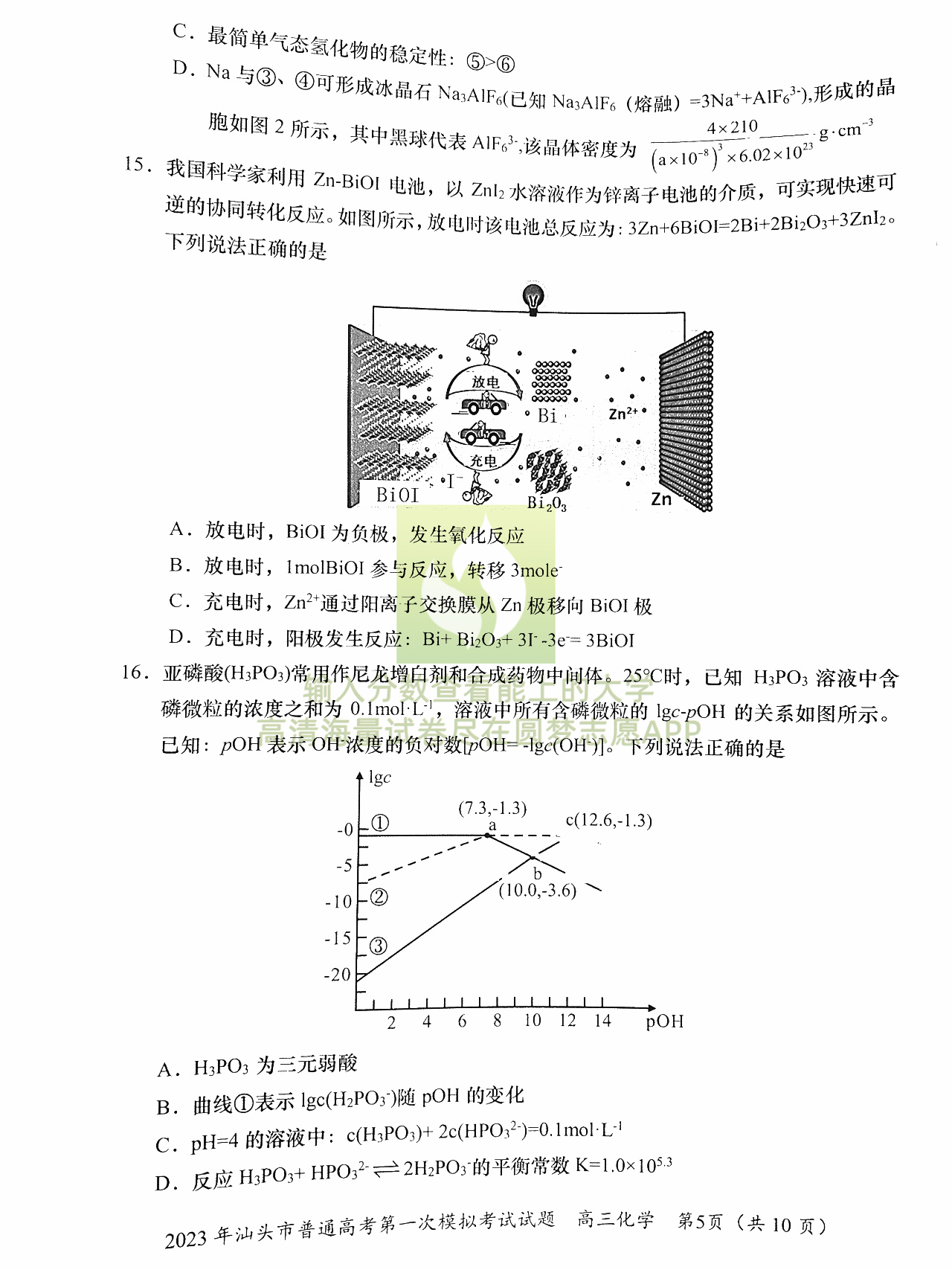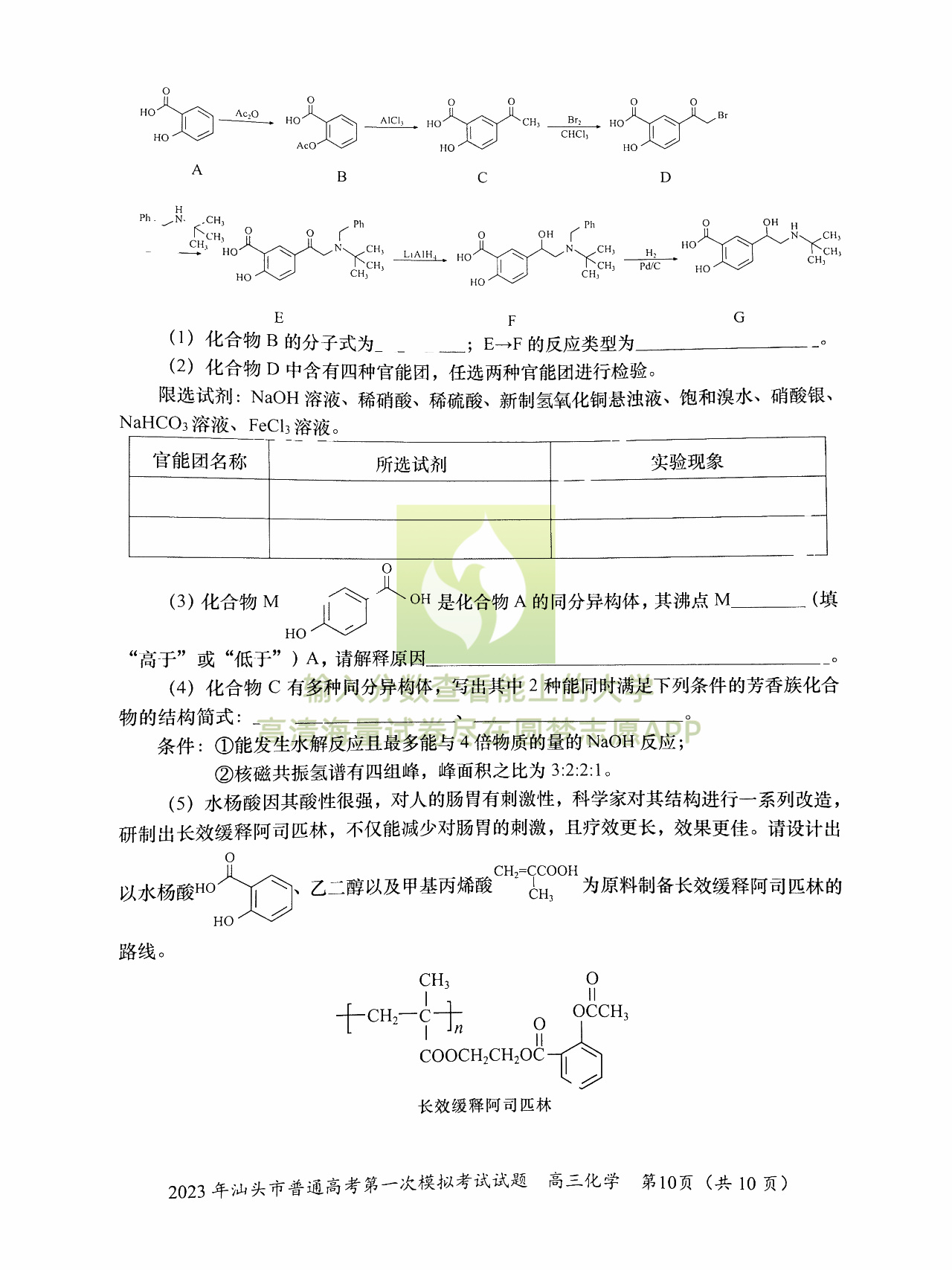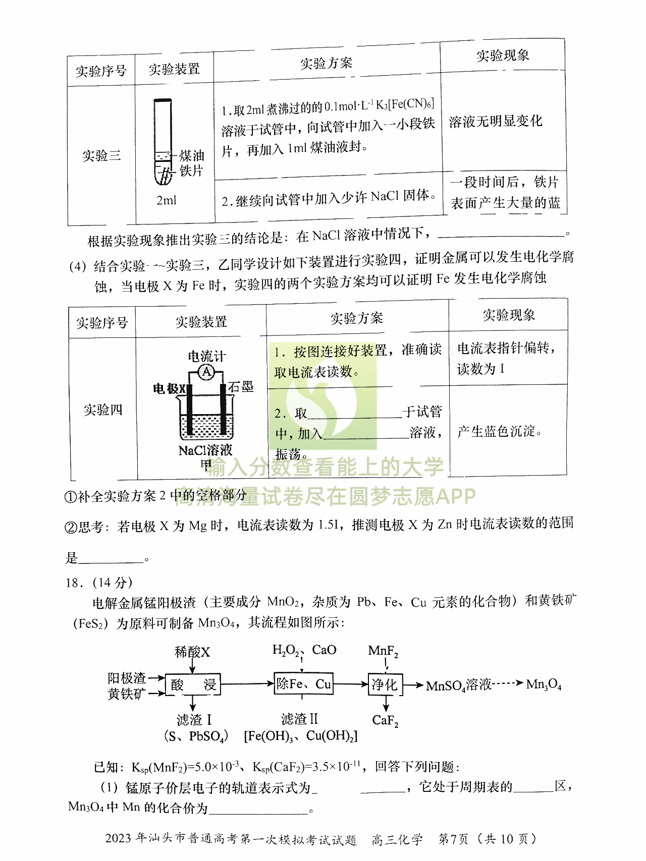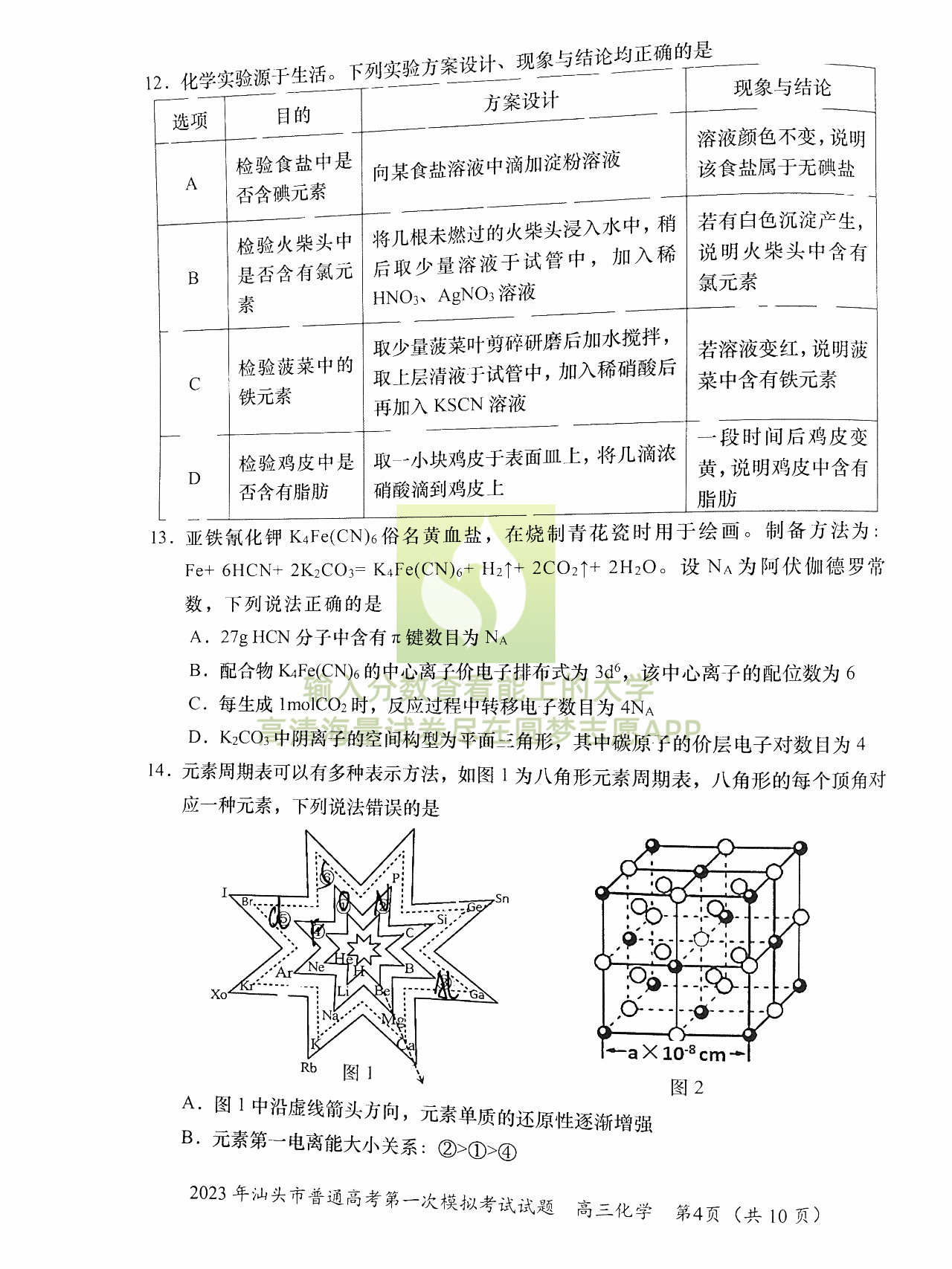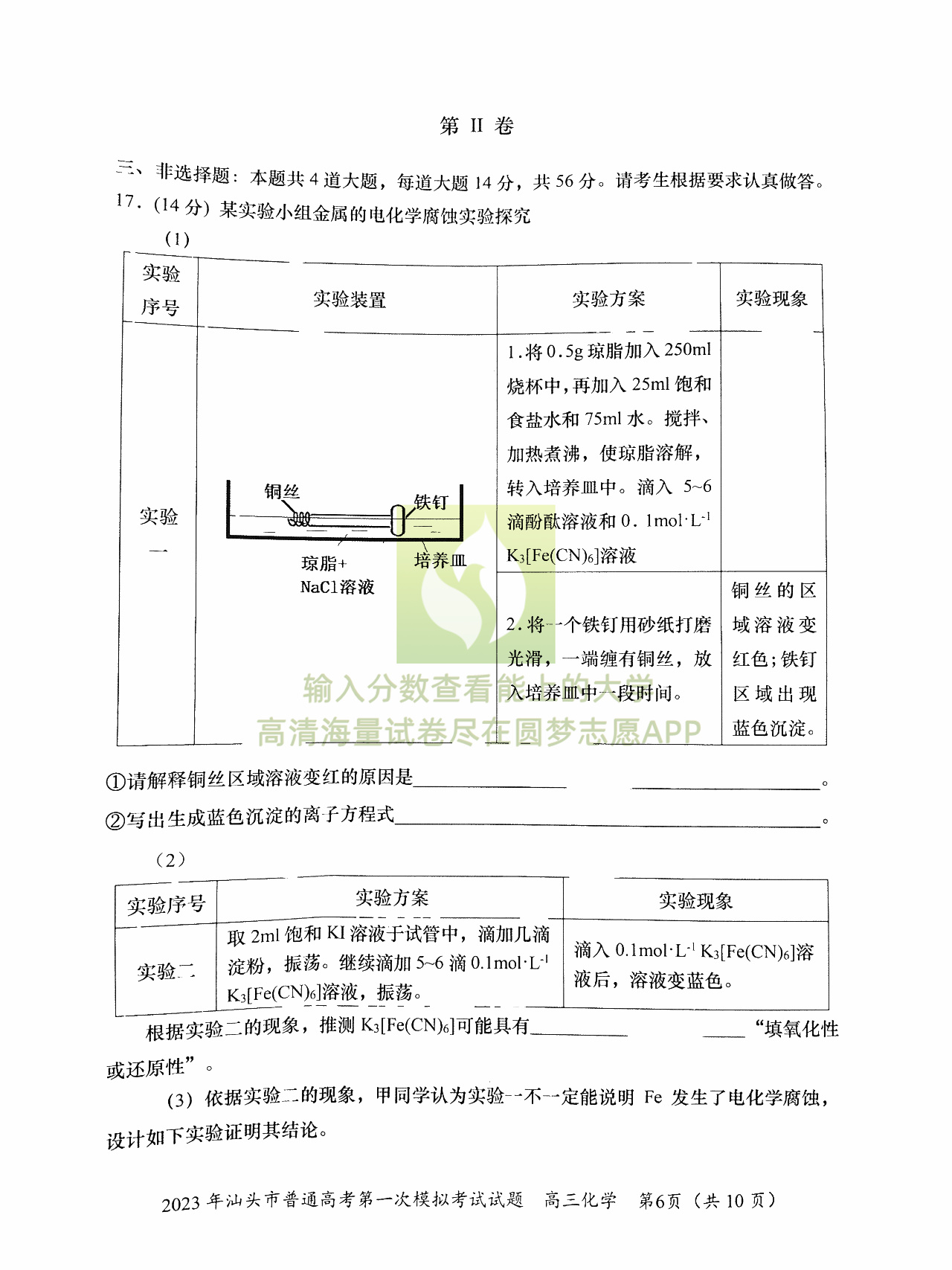 五.2023汕头一模化学试卷真题及答案解析汇总