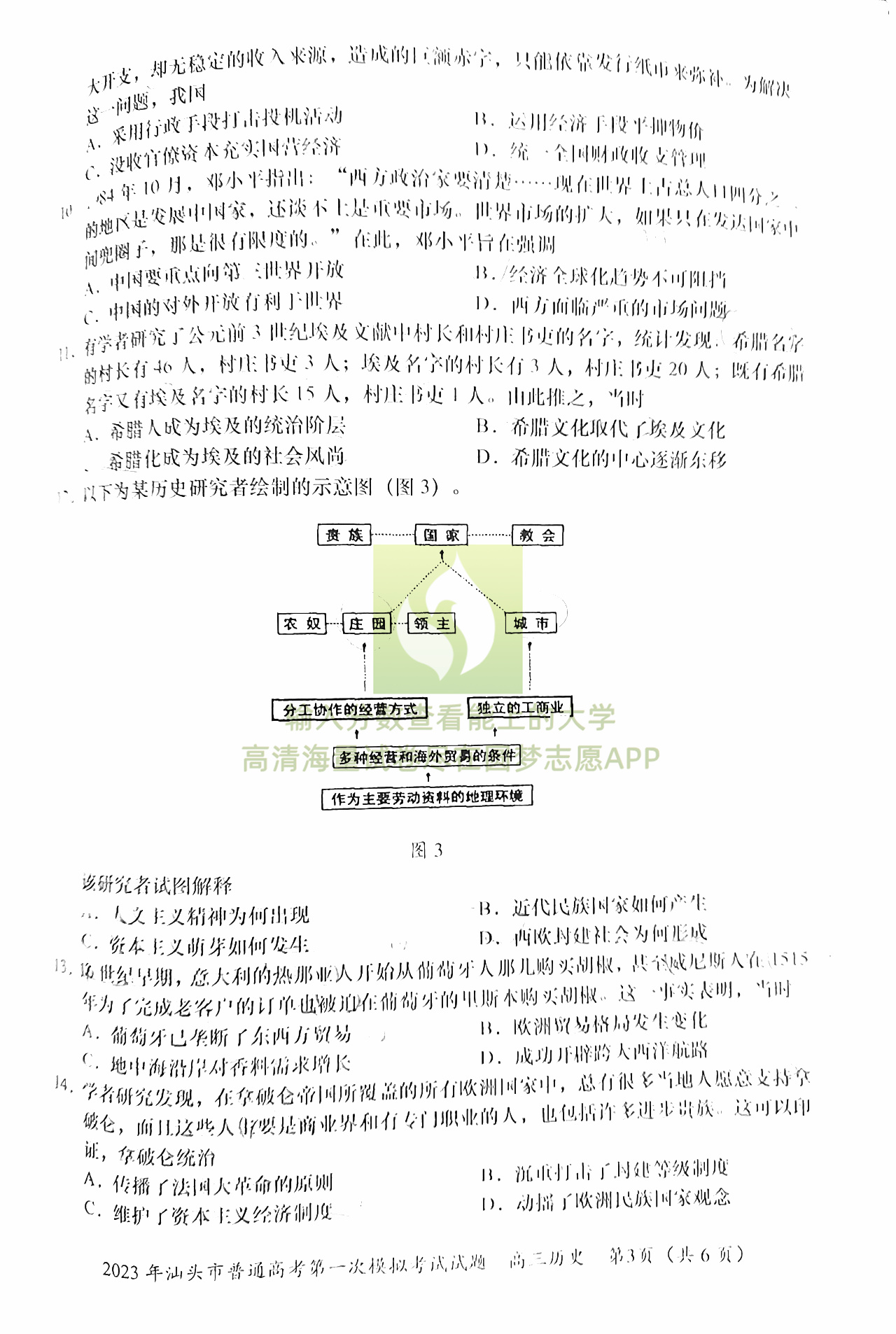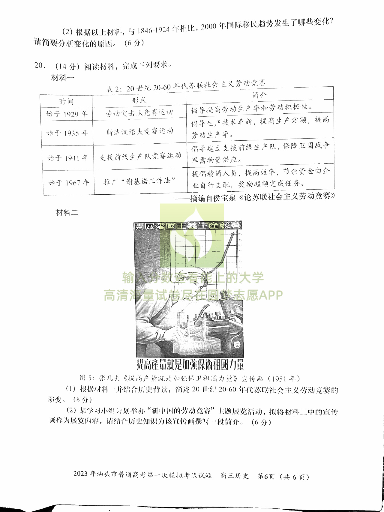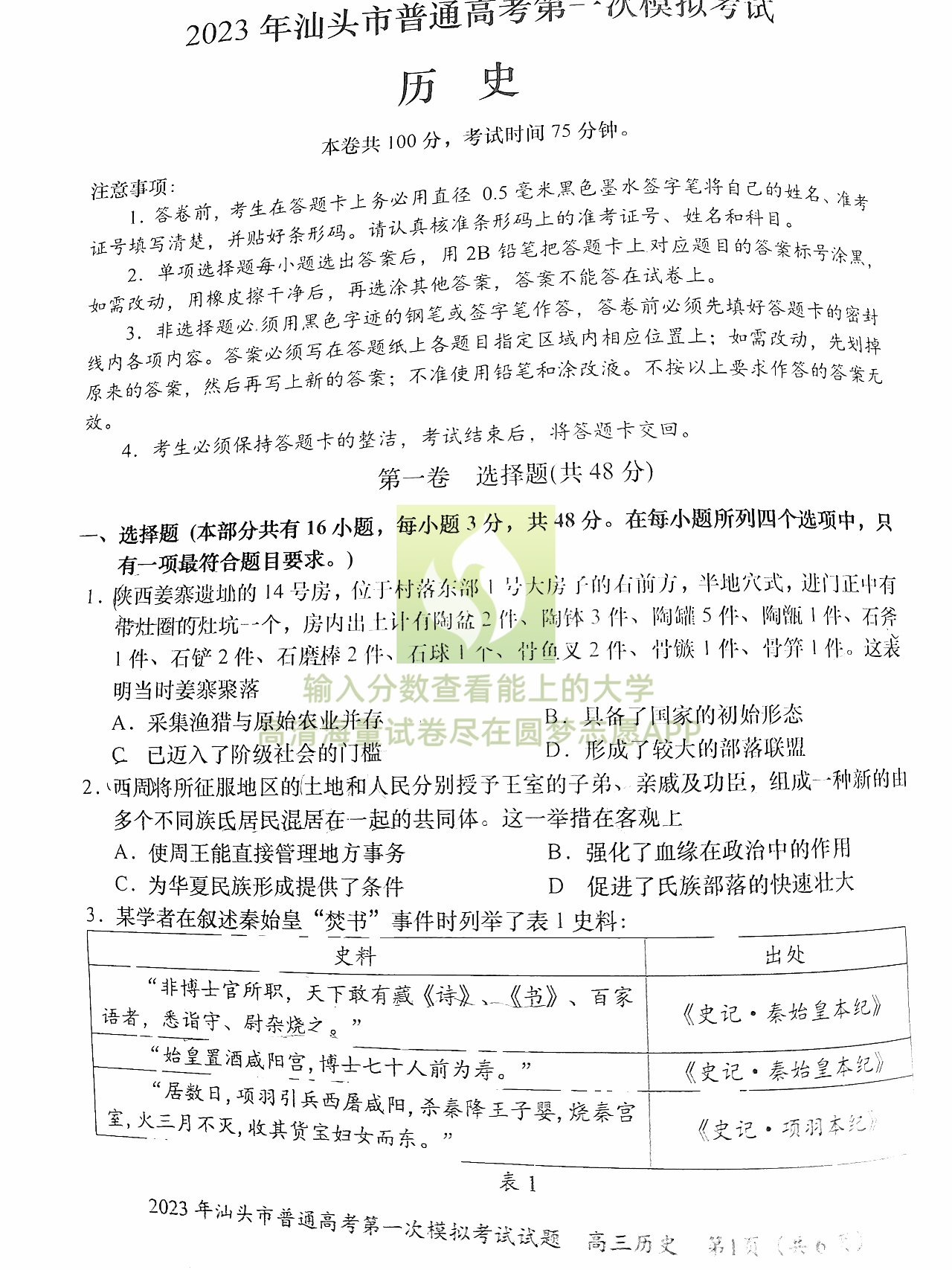 八.2023汕头一模历史试卷真题及答案解析汇总