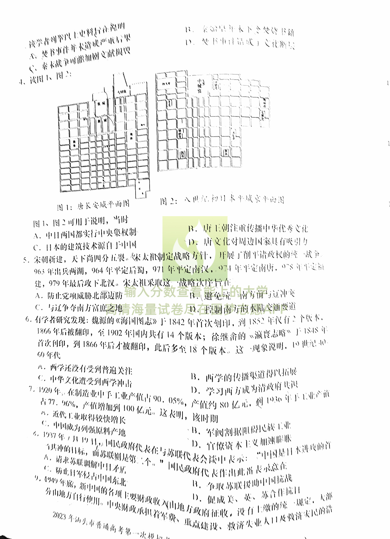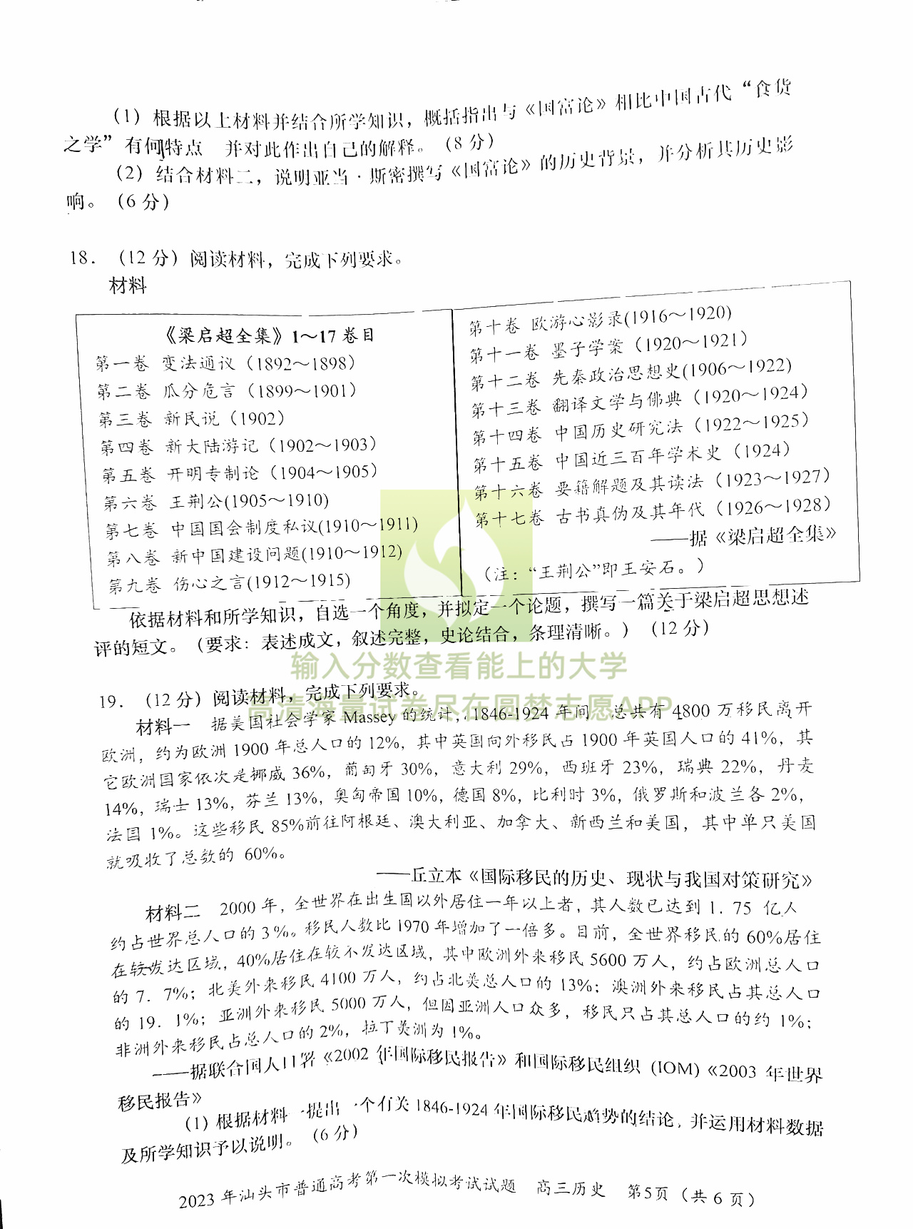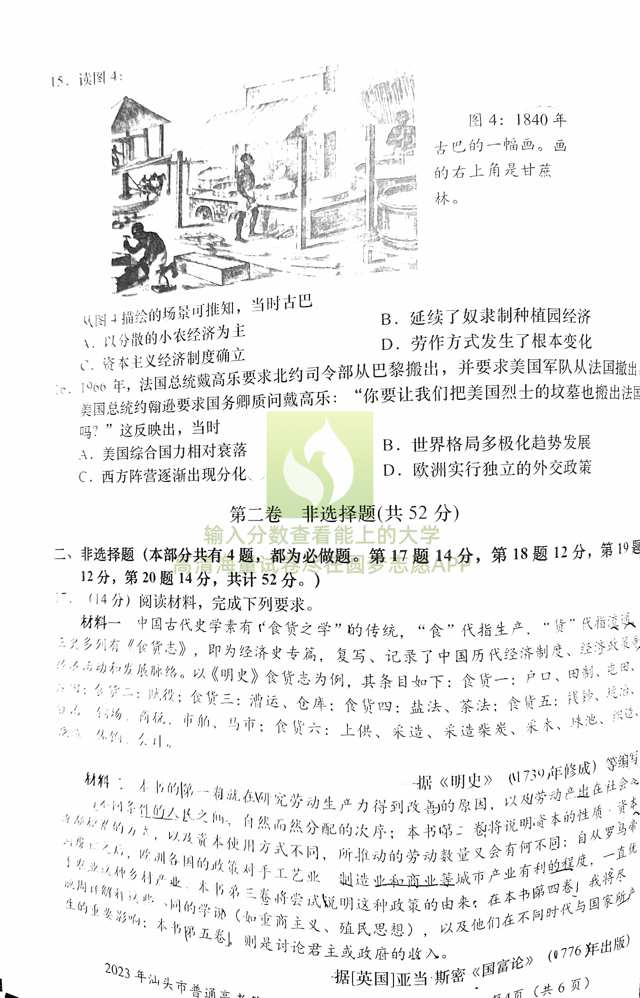 八.2023汕头一模历史试卷真题及答案解析汇总