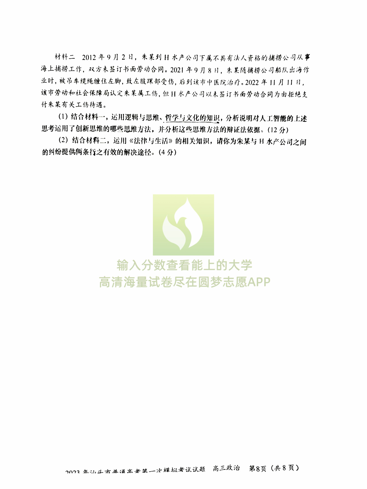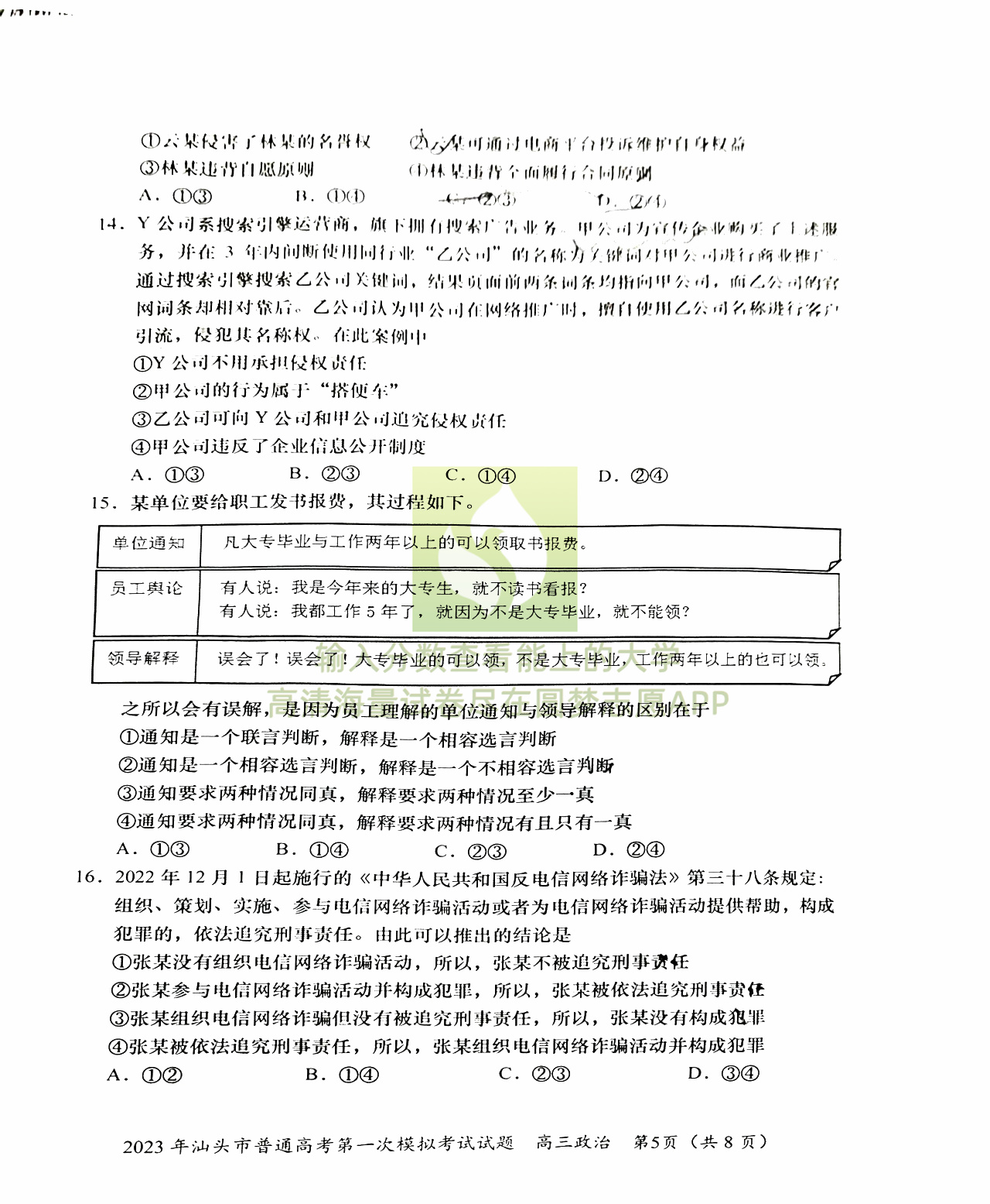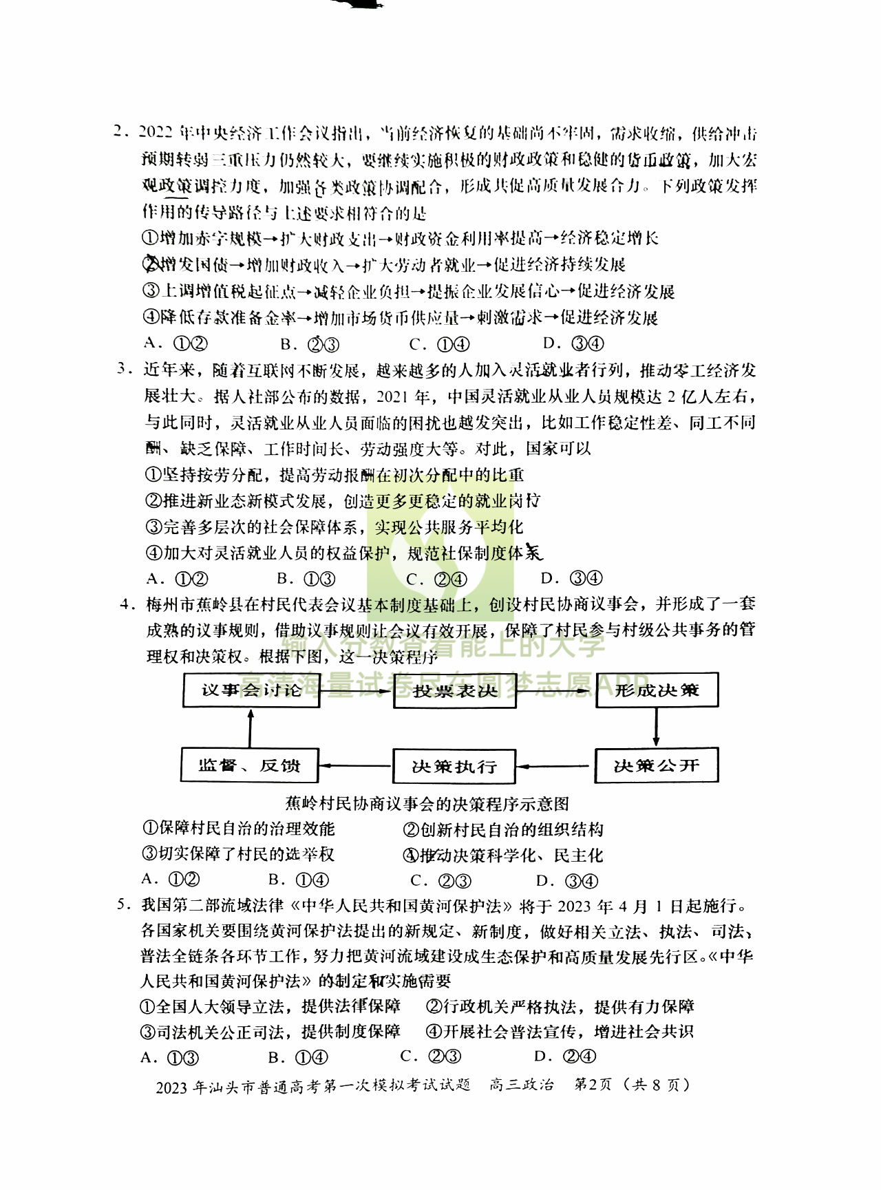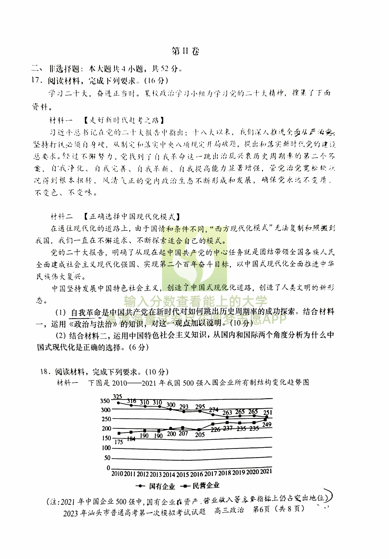 七.2023汕头一模政治试卷真题及答案解析汇总