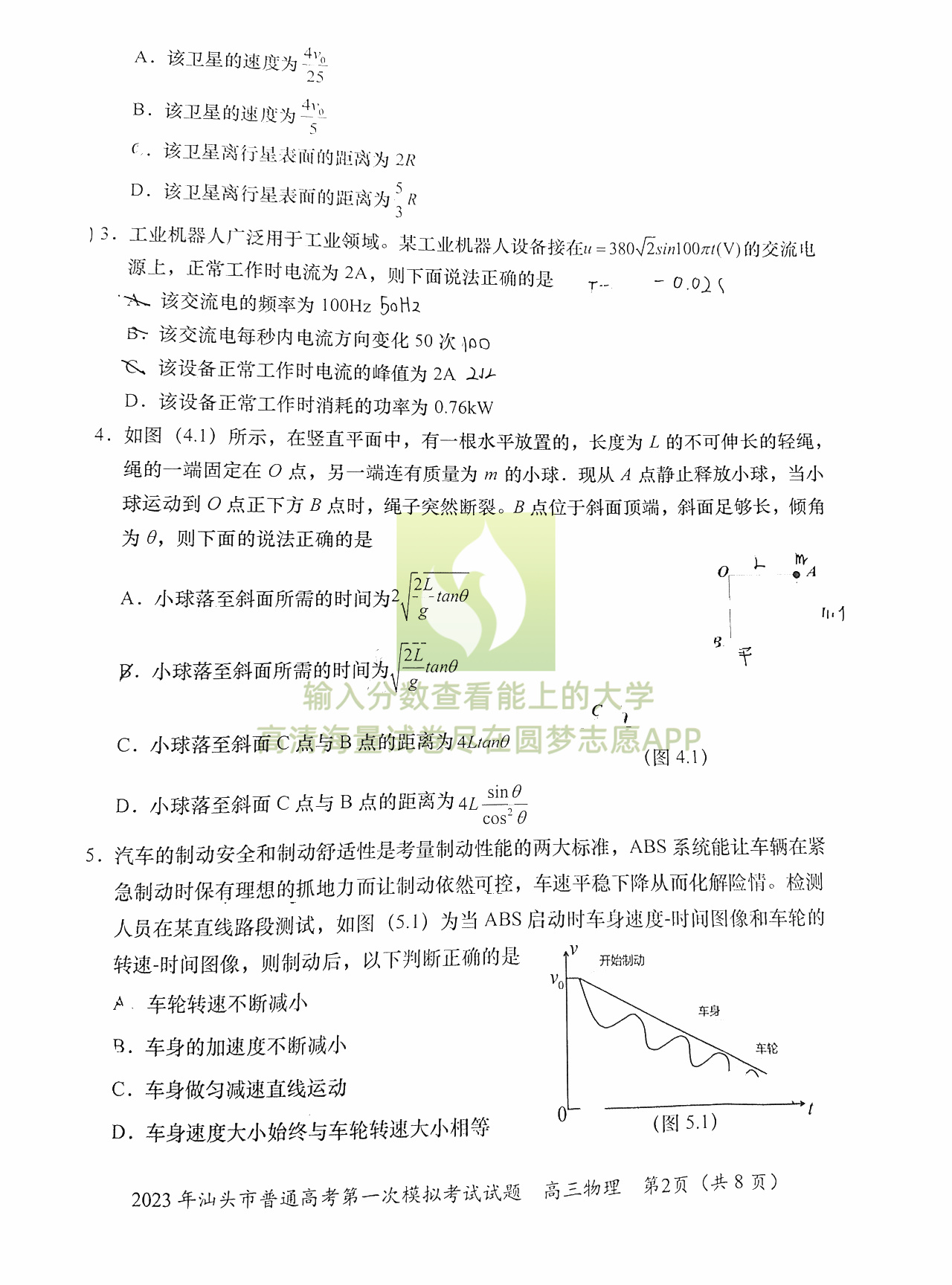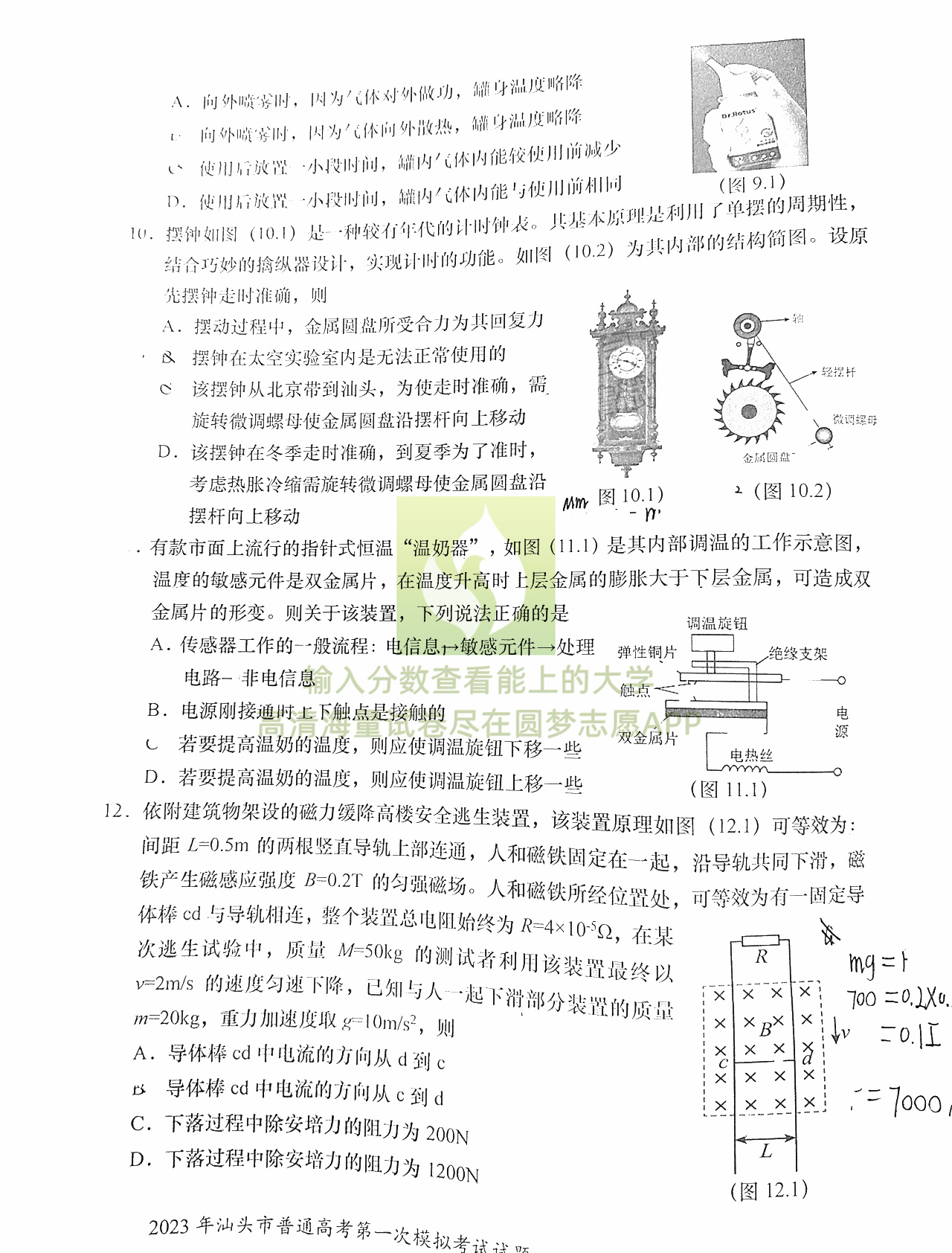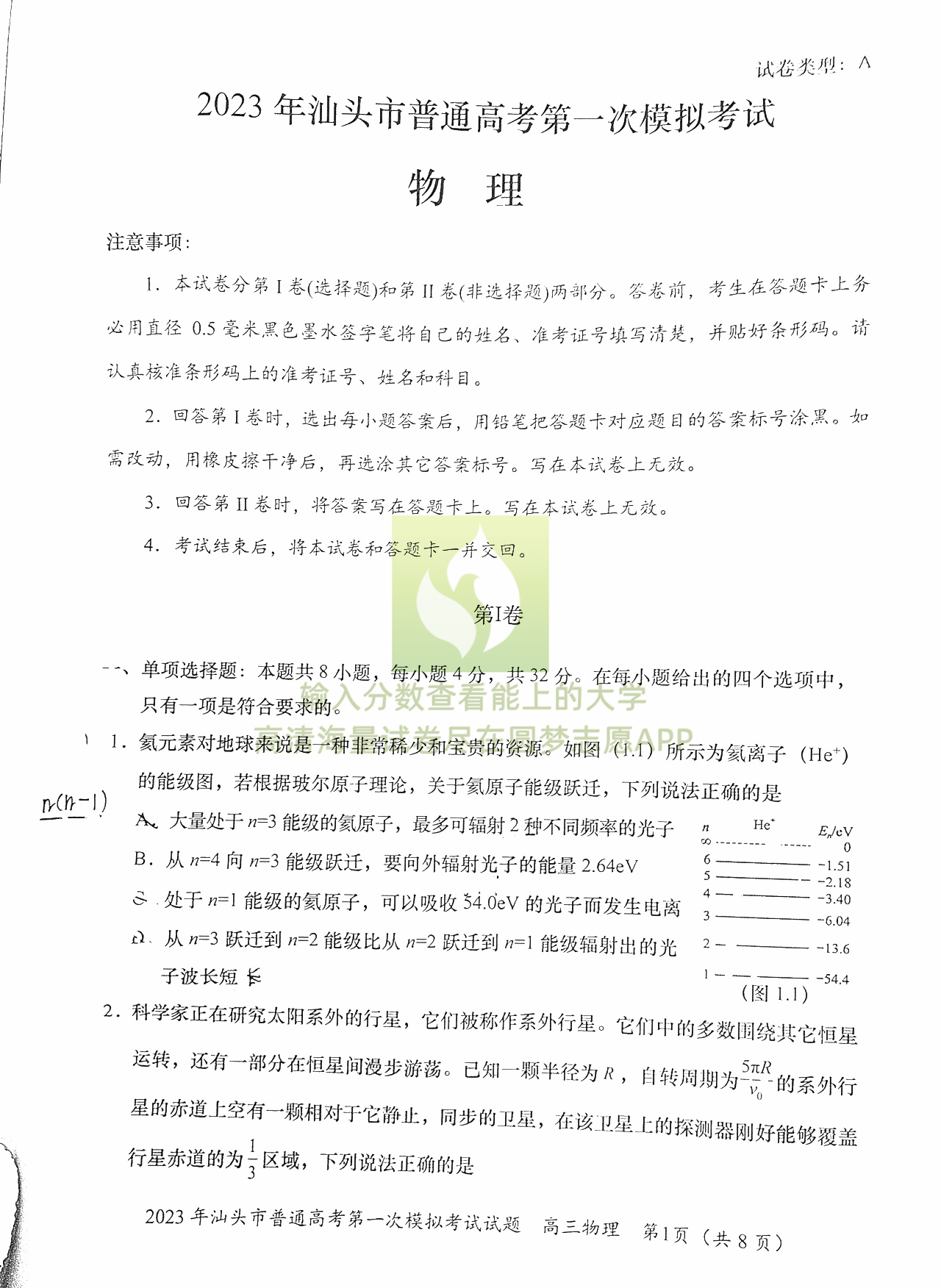 四.2023汕头一模物理试卷真题及答案解析汇总