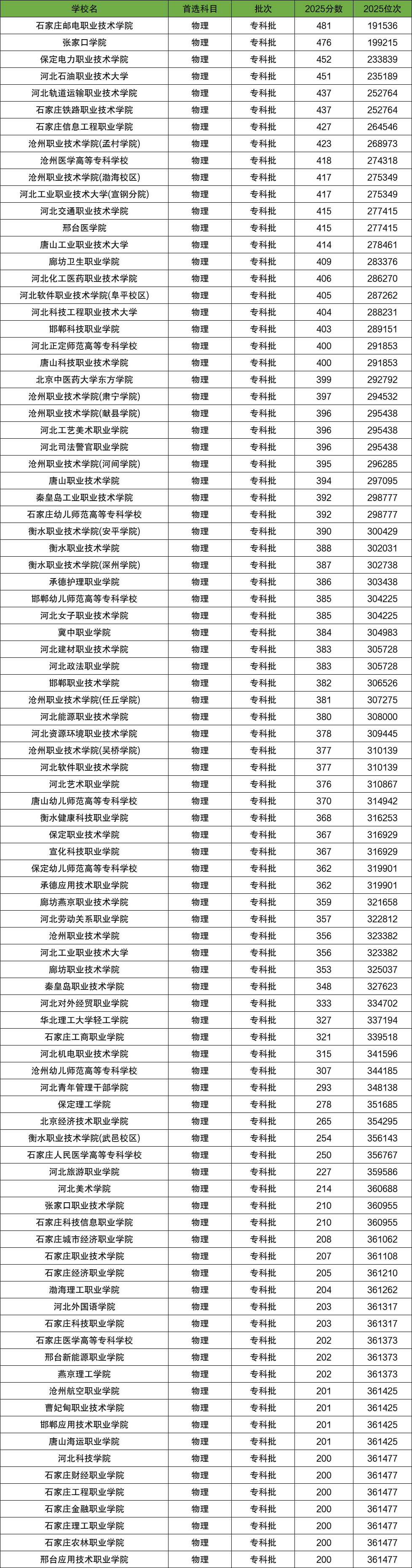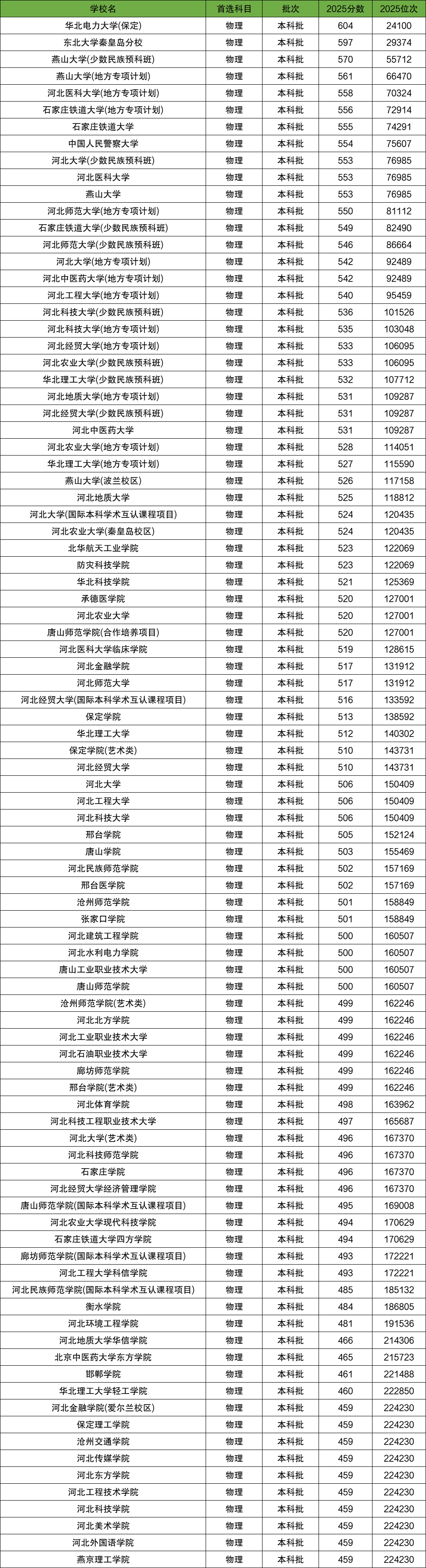 根据2025年高考河北省一分一段表可知,历史类477分对应的名次为64897,物理类459分对应的名次为224230,只有高考成绩考进了河北全省这么多名的考生才有机会被本科大学录取。