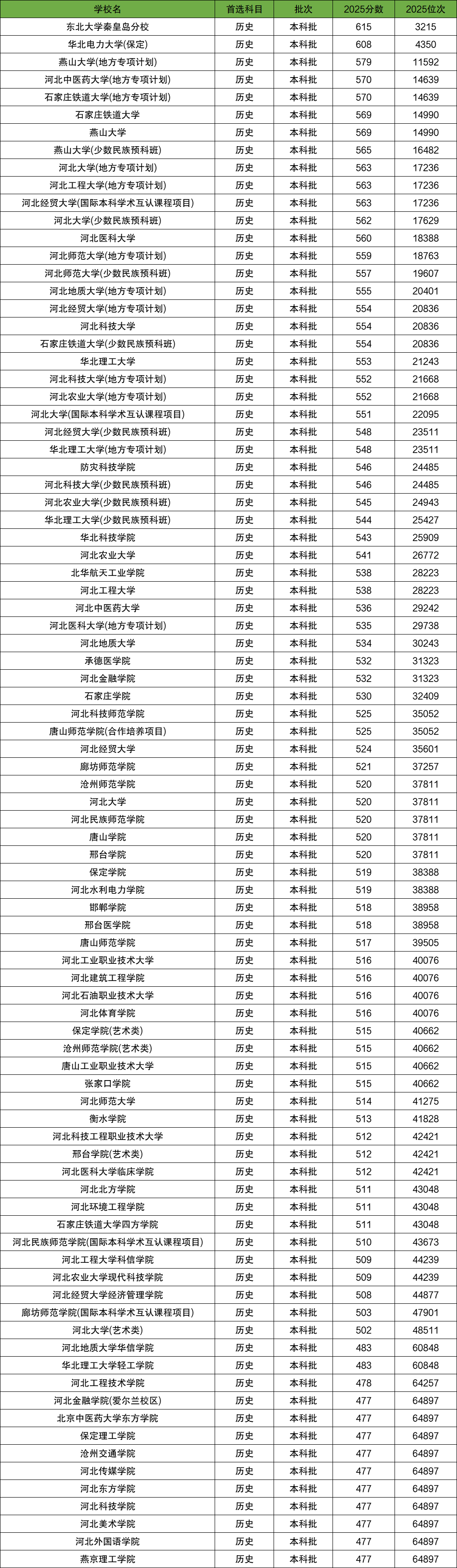 河北历史类本科线为477分。本文将为大家奉上河北省内各大高校2025年在河北省的最低录取分数线及位次排名,并且再附上2025年河北高考本科分数线汇总,供2026年的高三同学们参考!