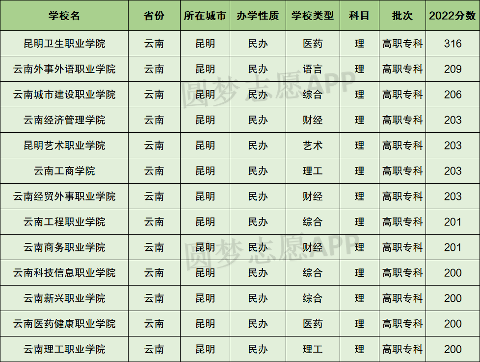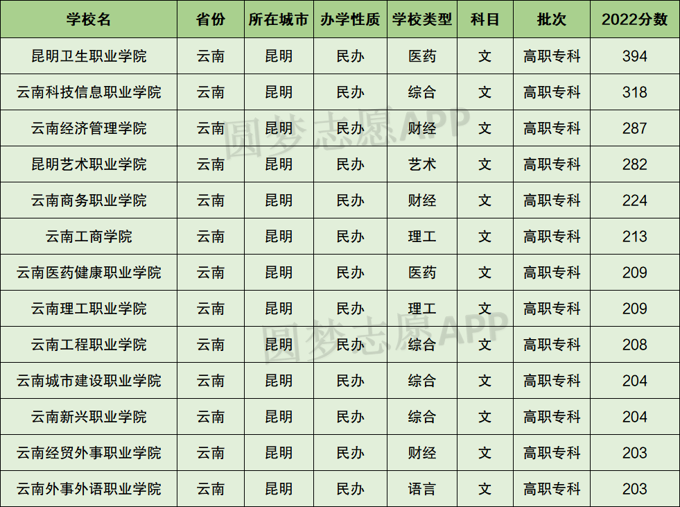 同时根据圆梦志愿APP查询的2022年昆明市所有民办本科大学录取分数线可知,在昆明市分数线最高的十所民办大学如下: