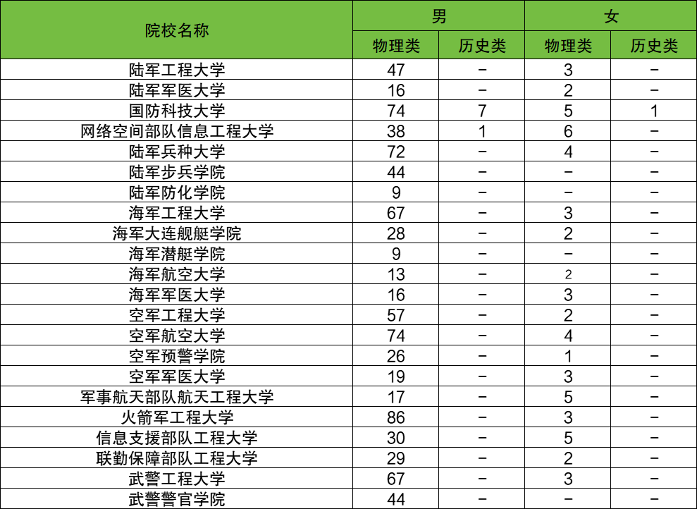 下面是湖北军校招生院校名单及招生计划表: