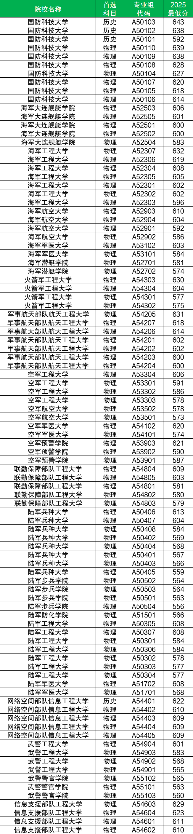 二、湖北军校2025录取分数线表