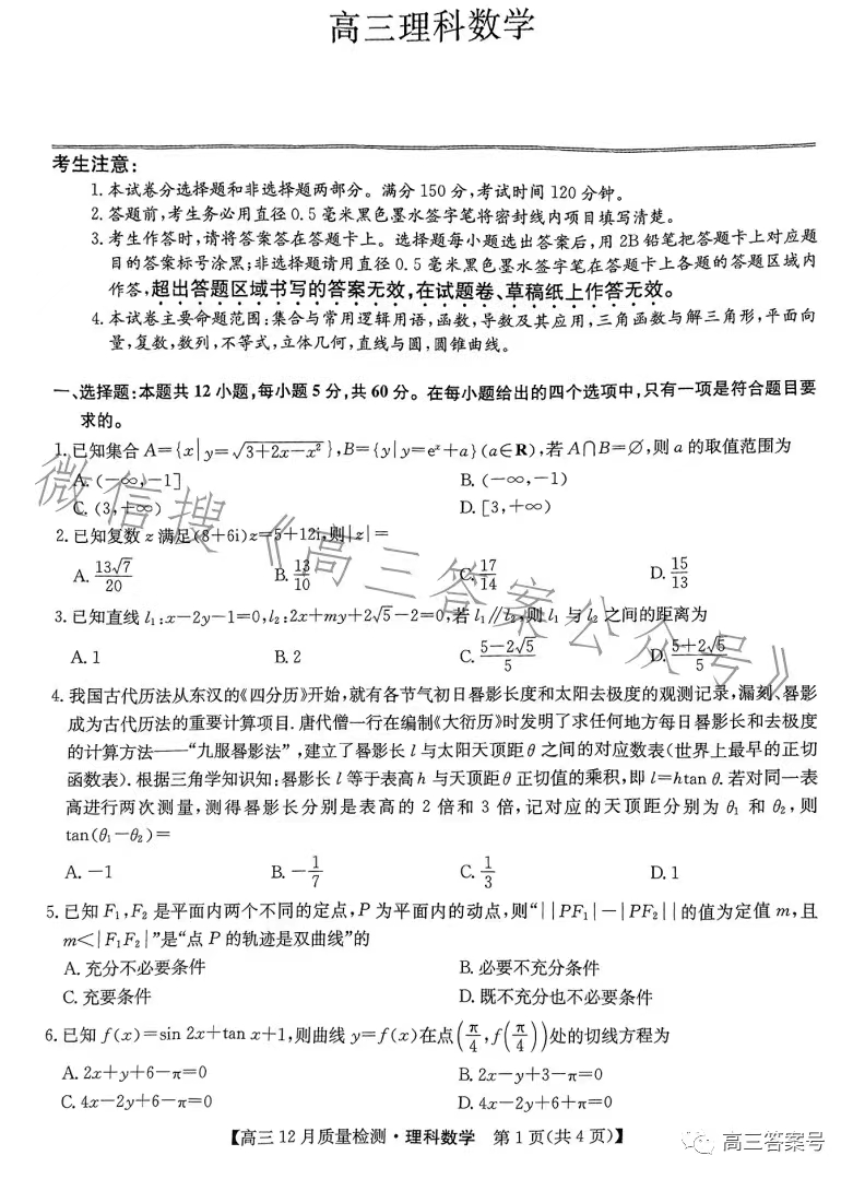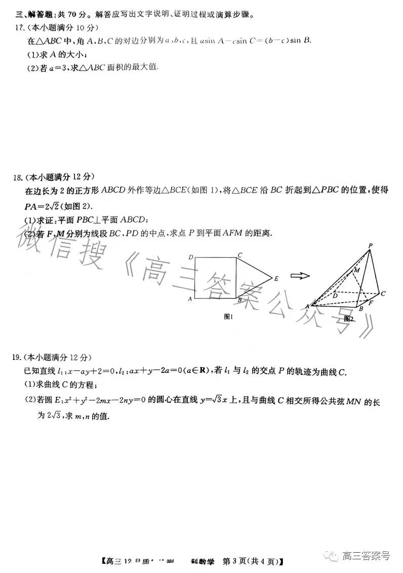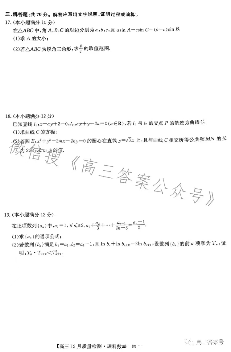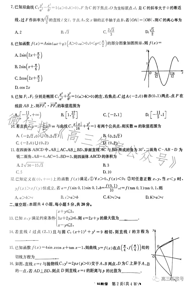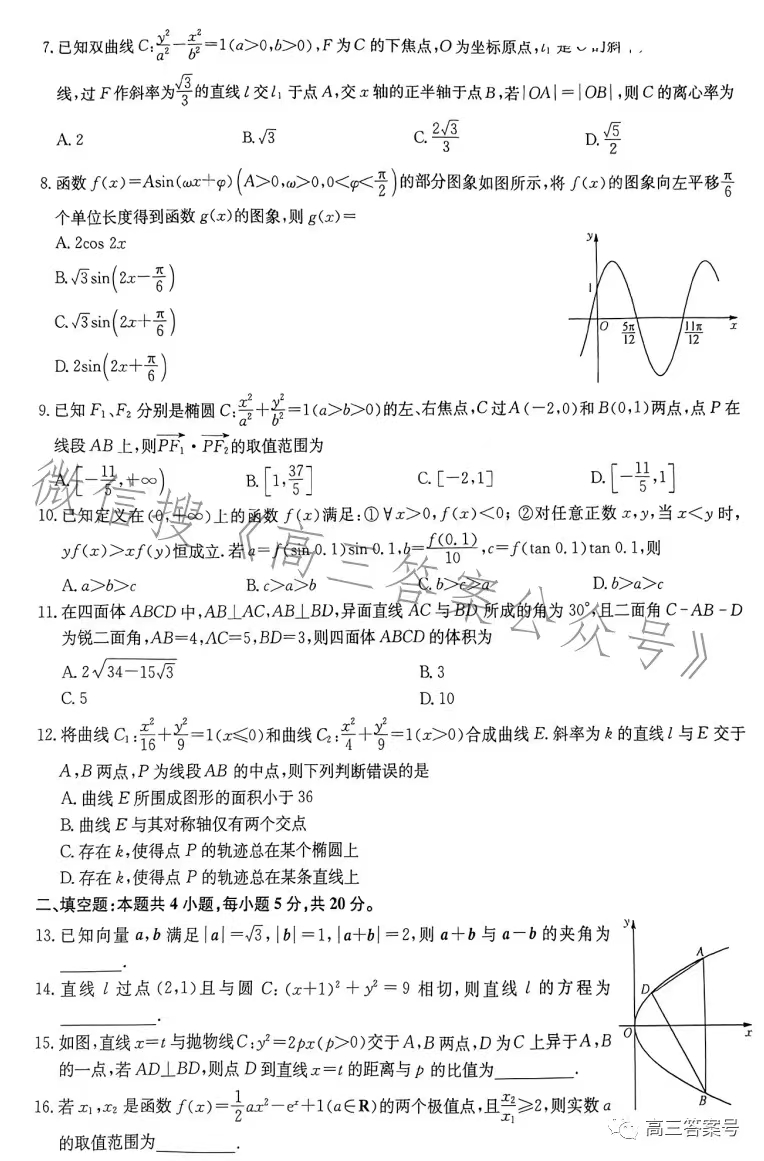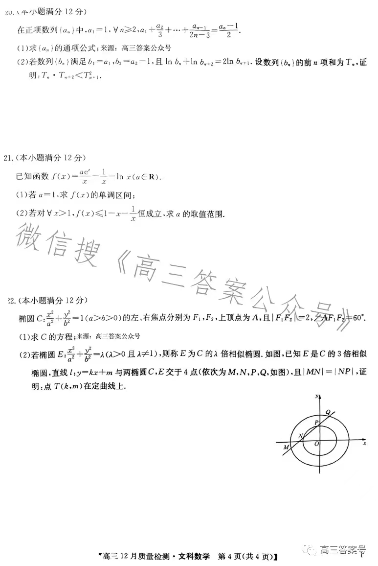 二、2023江西九师联盟高三12月联考数学试卷及答案