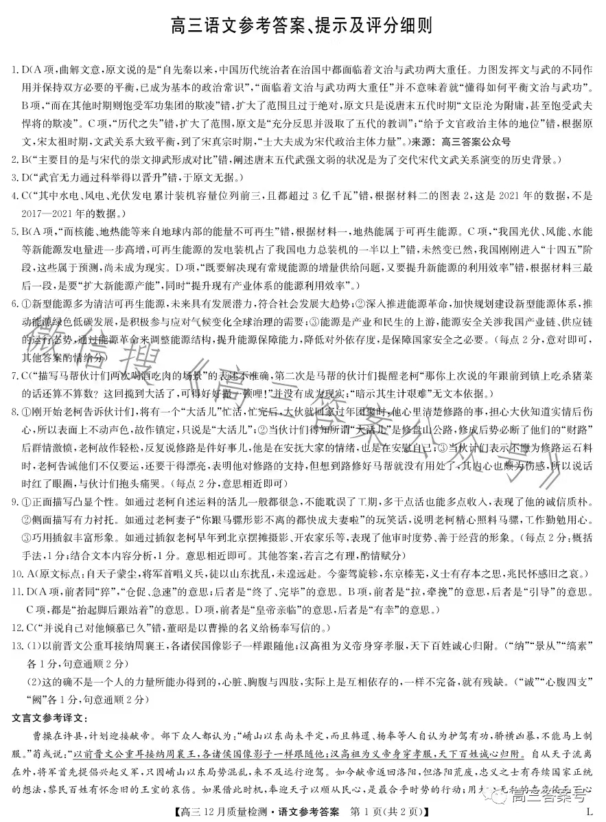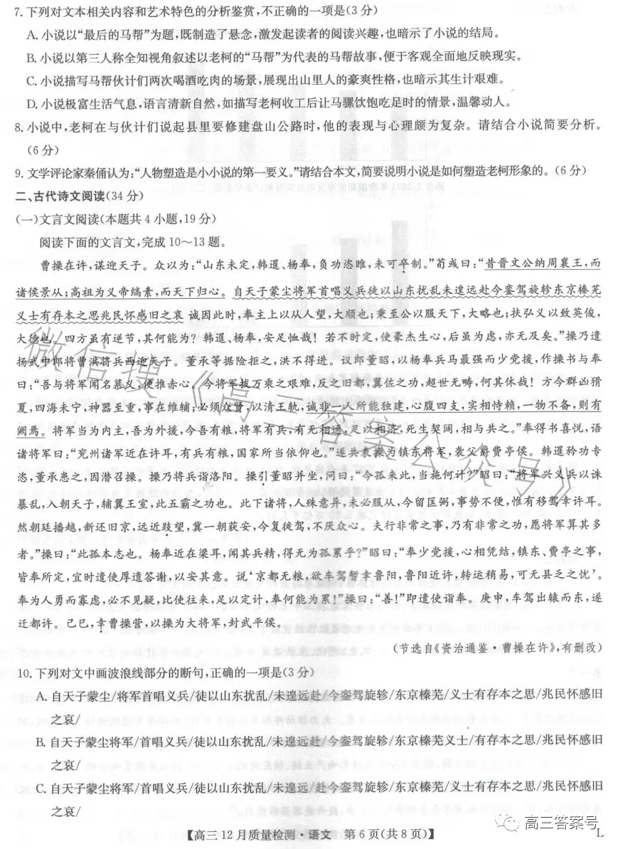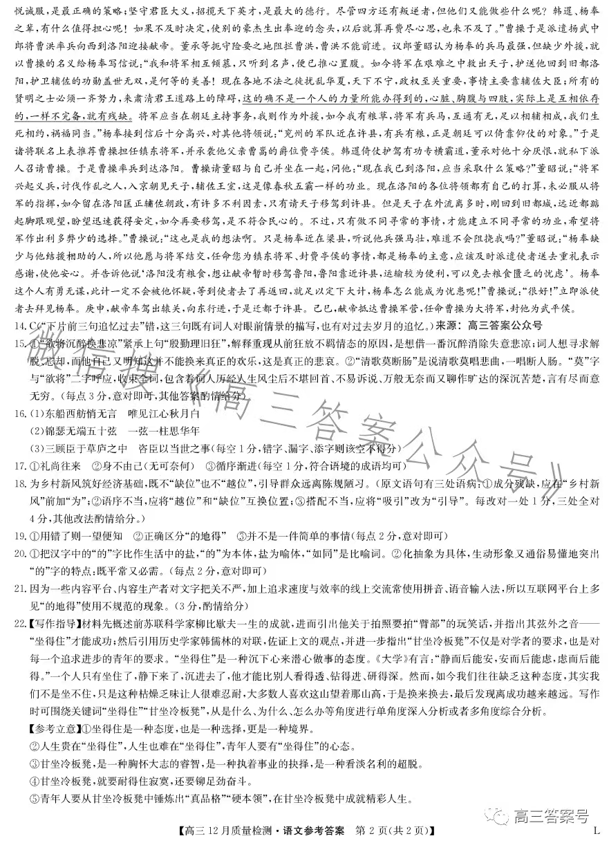 一、2023江西九师联盟高三12月联考语文试卷及答案