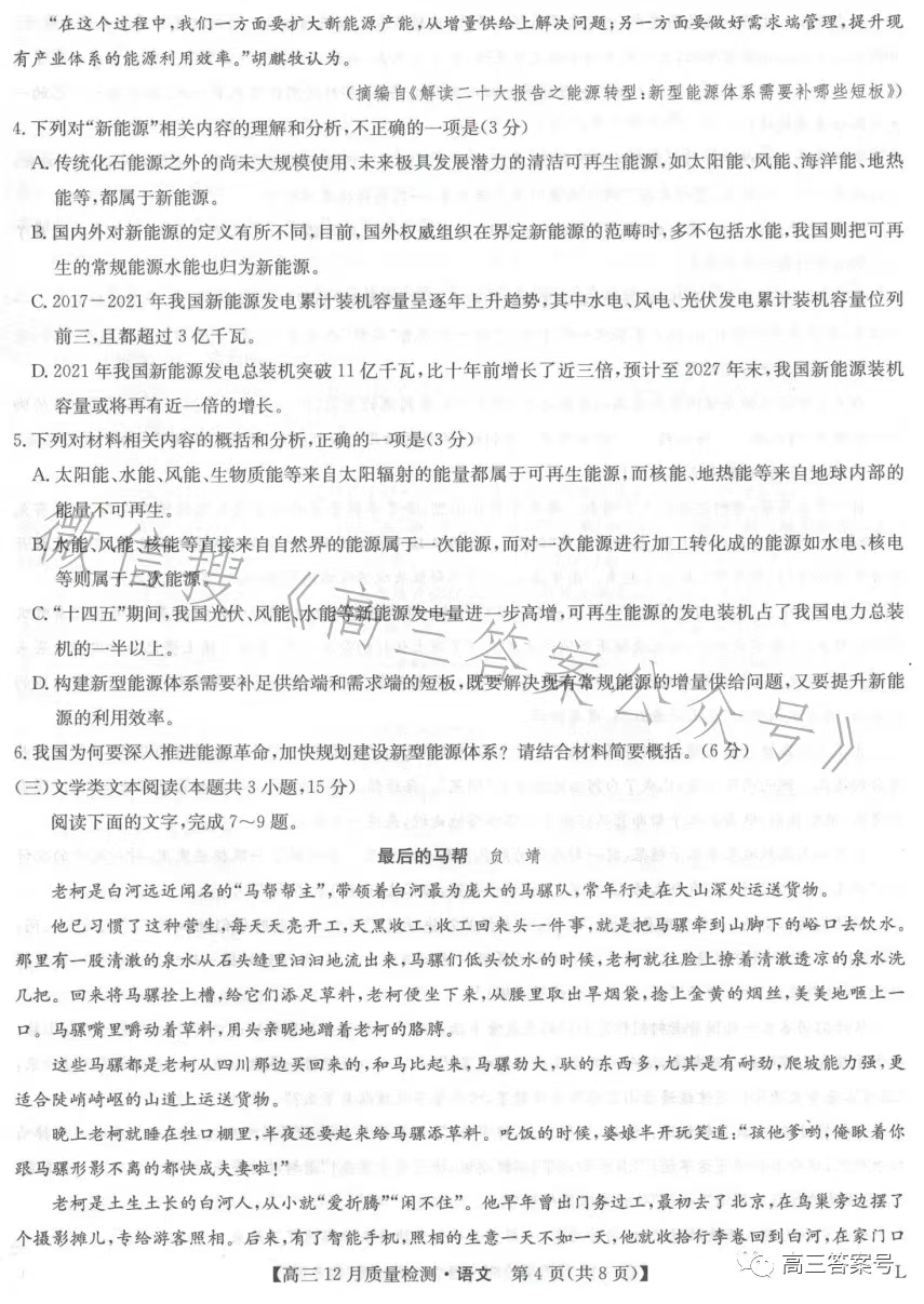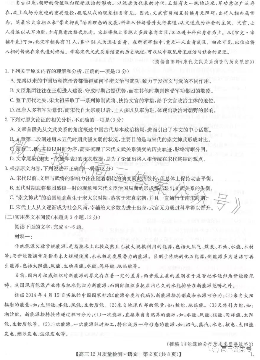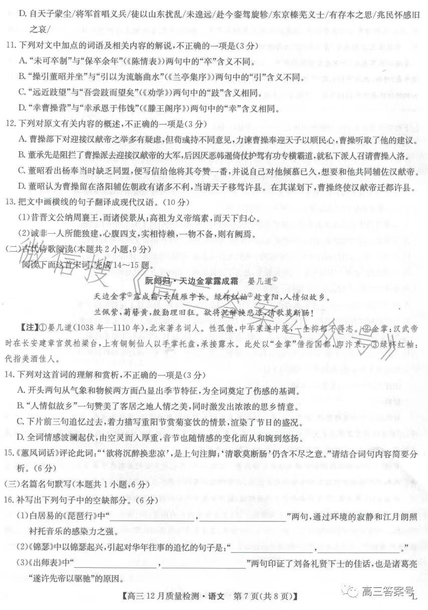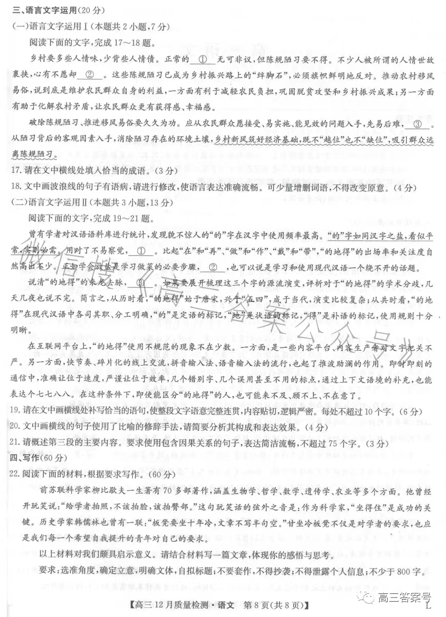 一、2023江西九师联盟高三12月联考语文试卷及答案