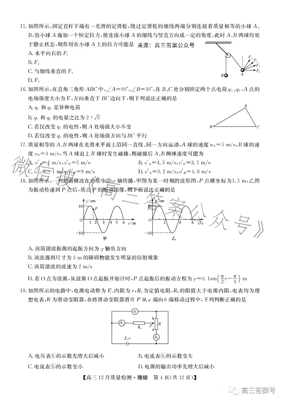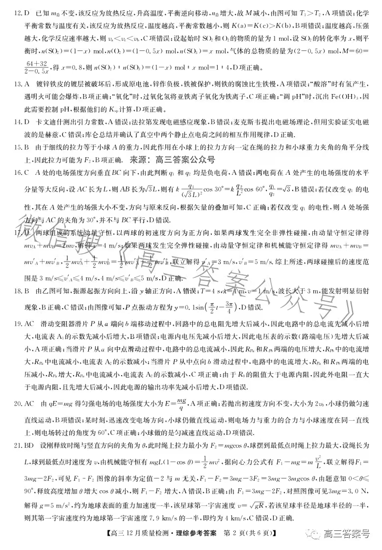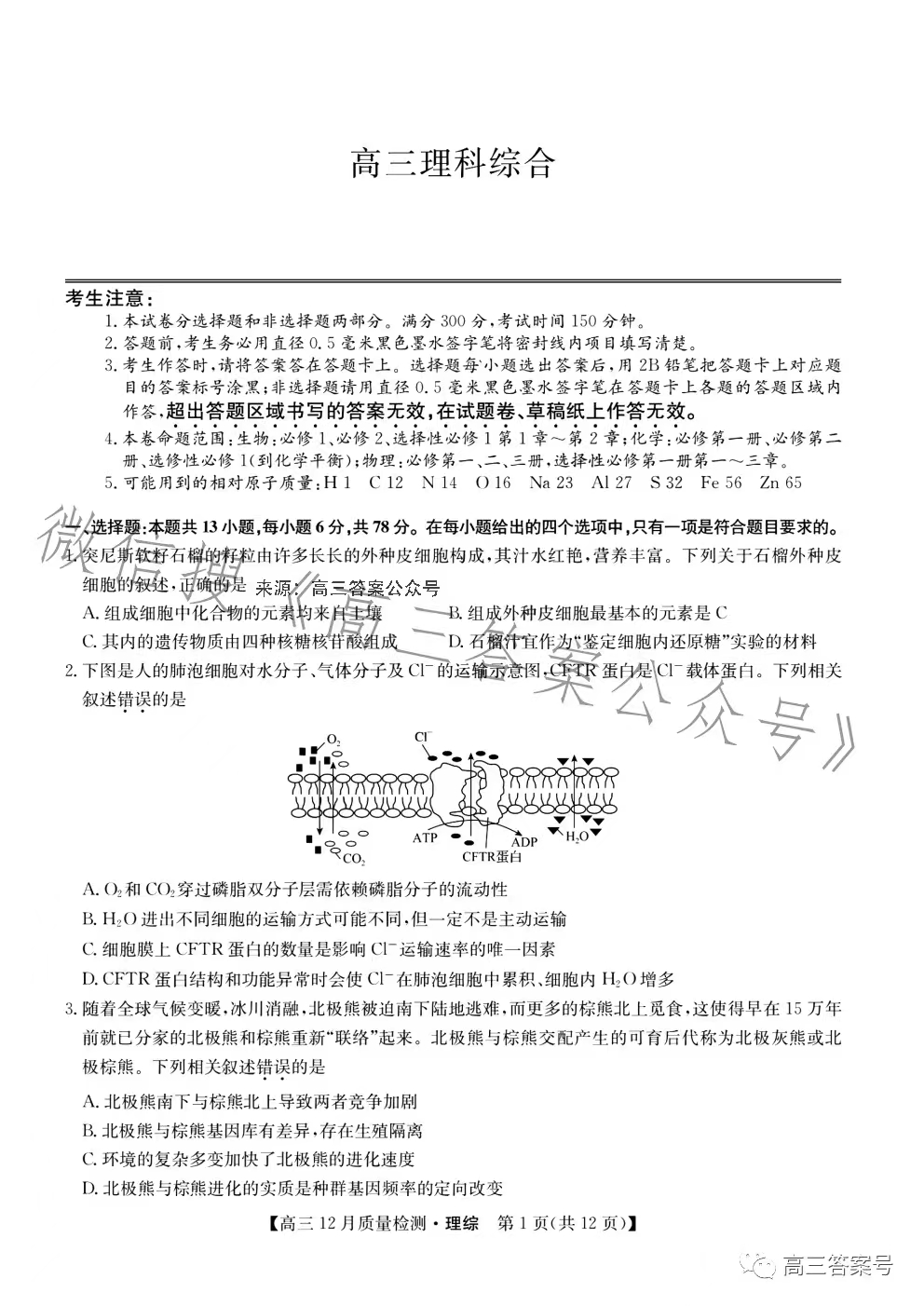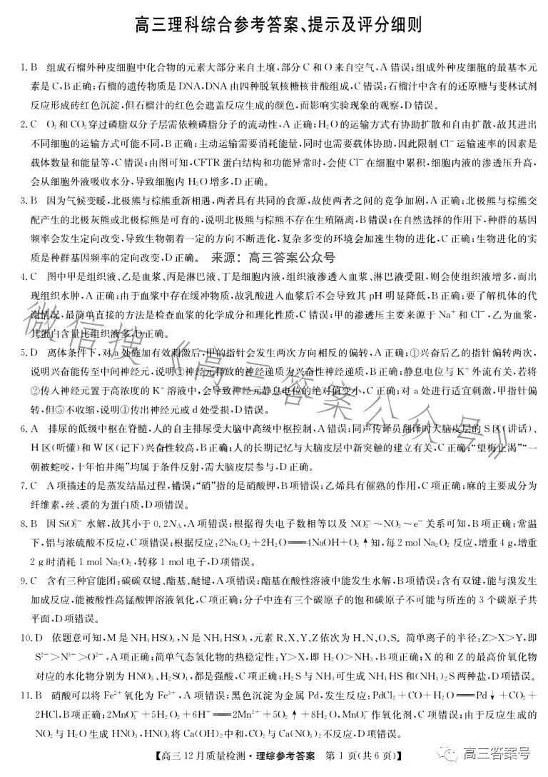 四、2023江西九师联盟高三12月联考理综试卷及答案