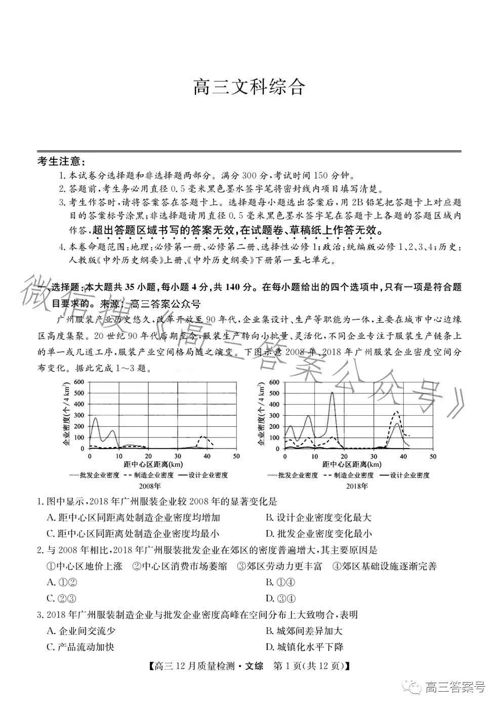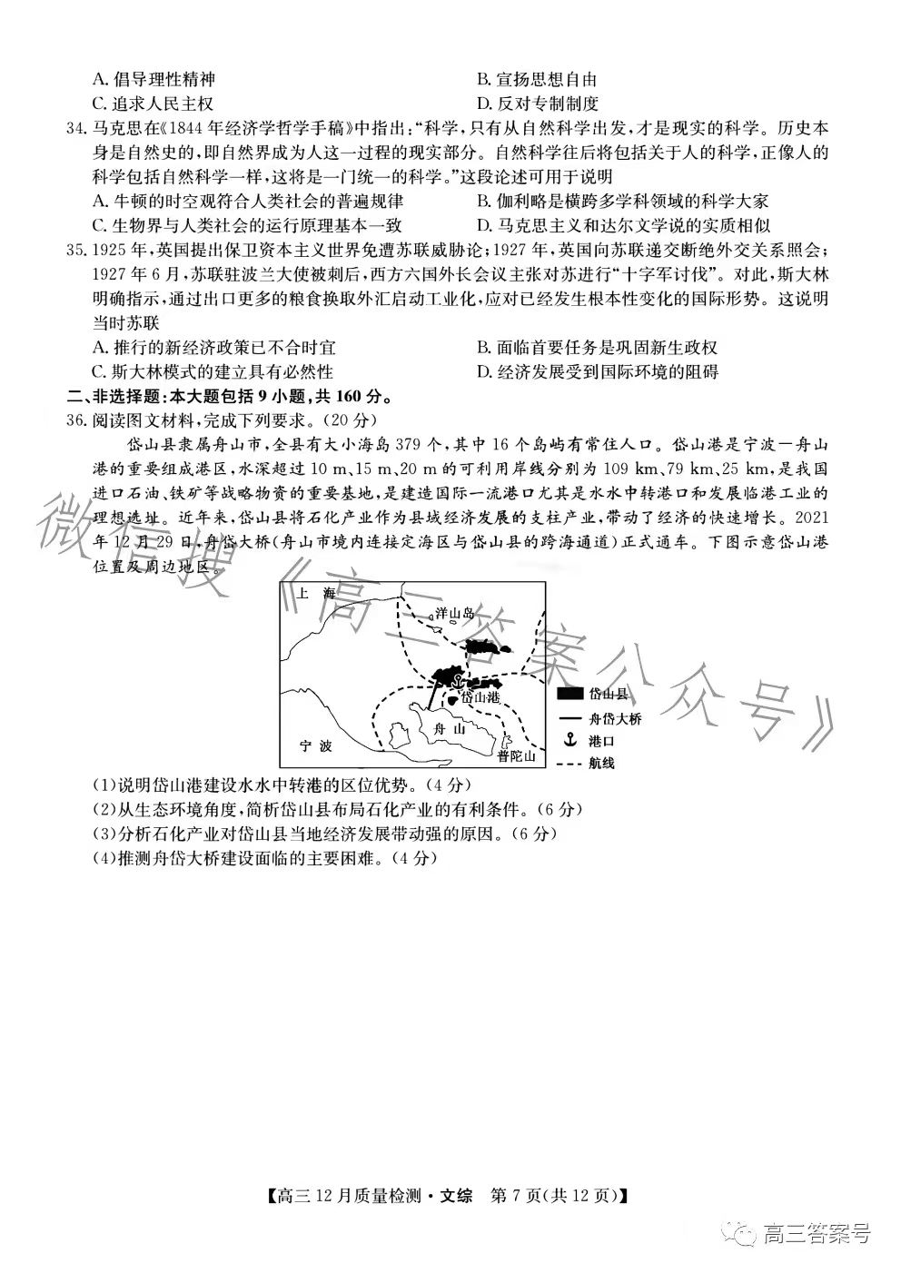 五、2023江西九师联盟高三12月联考文综试卷及答案