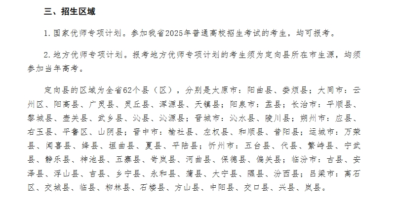 优师计划招生信息可查看:山西师范大学2025年地方优师分县分专业分科招生计划