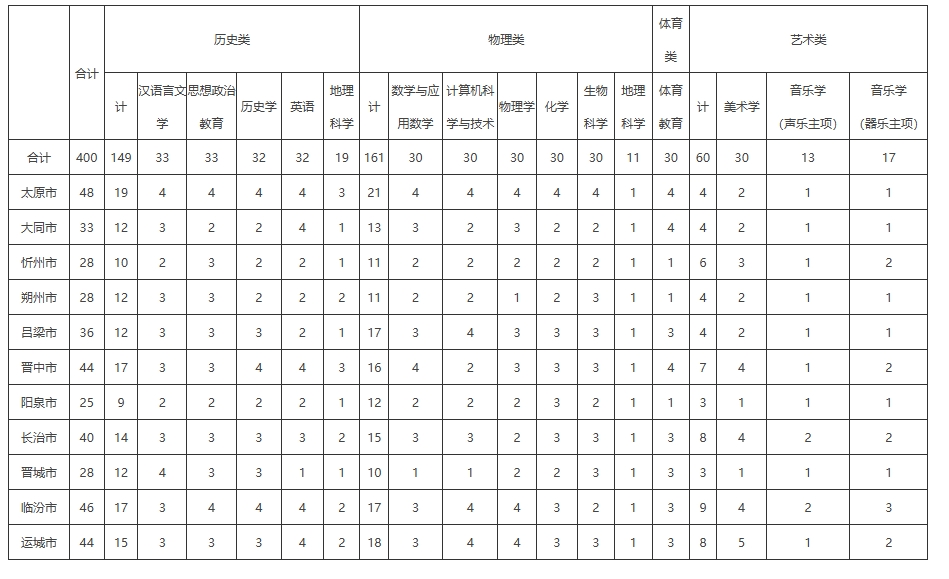 太原师范学院2025公费师范生招生计划表可直接查看:太原师范学院2025年山西省招生计划