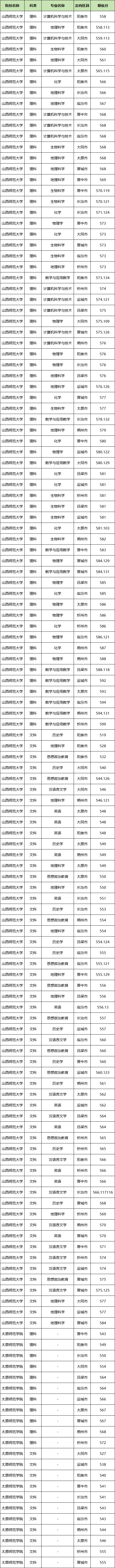 山西师范大学:文科最低分519分、理科最低分558分。