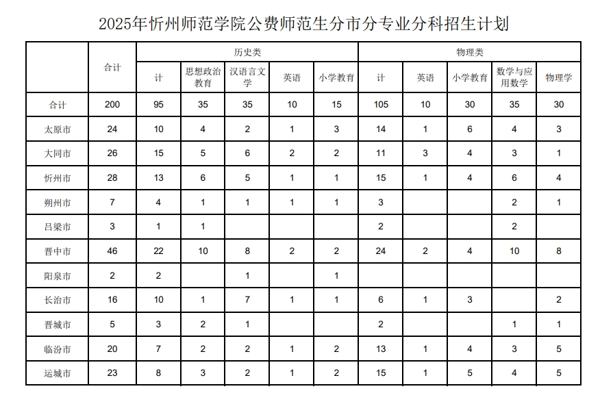 完整招生信息可查看:忻州师范学院2025年公费师范生招生计划