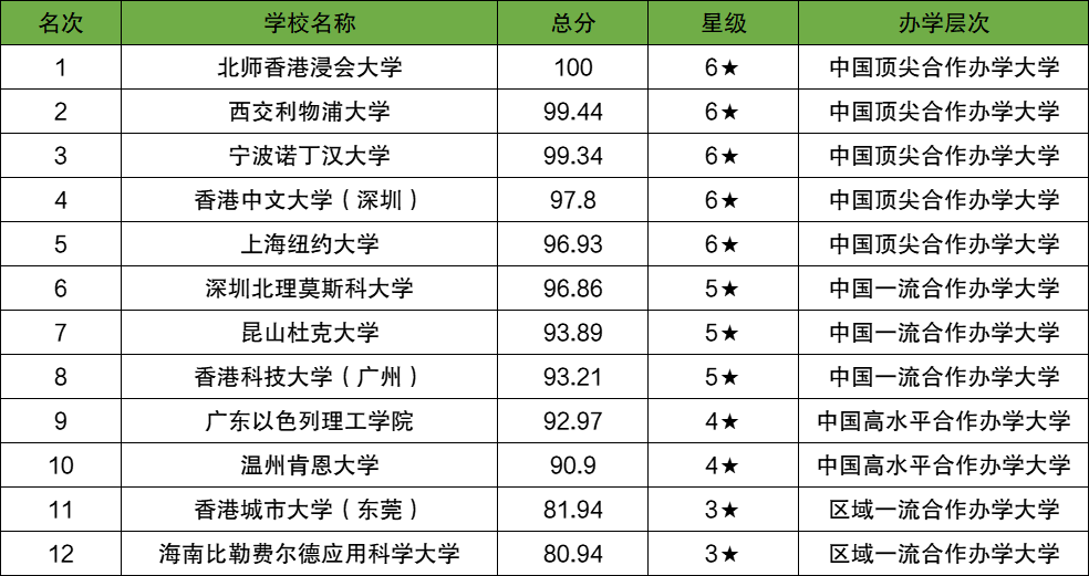 本期为大家介绍的是国内所有的中外合作办学大学的排名以及分数线情况,首先第一部分,我们来看看中外合作办学大学的排名数据。