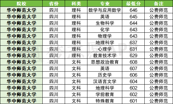 在文科方面,公费师范生的最低录取线是601,共有两个专业在该分数上,包含特殊教育和学前教育。
