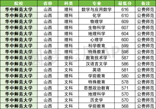 在理科方面,公费师范生的最低录取线是620分,共有两个专业在该分数上,分别是学前教育和心理学;