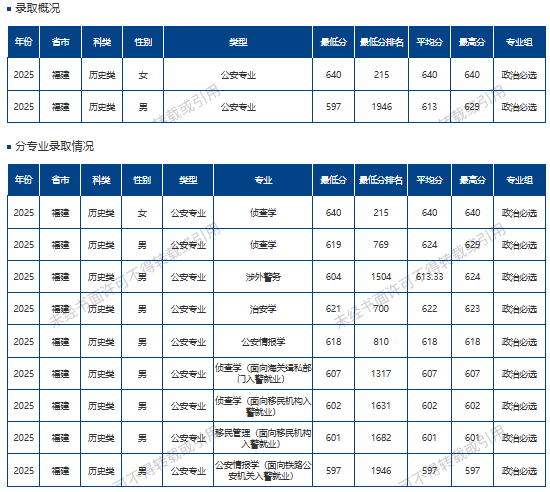 2025年南京警察学院在福建录取最低分:历史类610分、物理类583分。