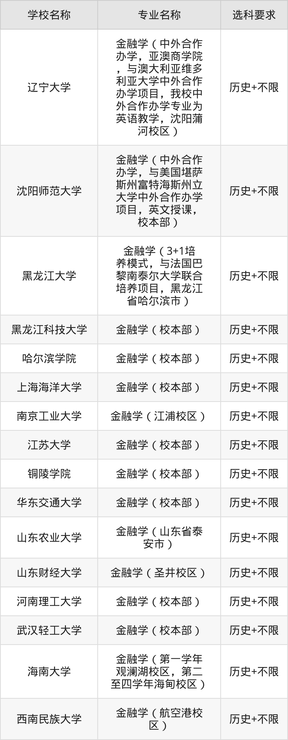 | 哈尔滨金融学院 | 金融学(校本部) | 物理+不限 |