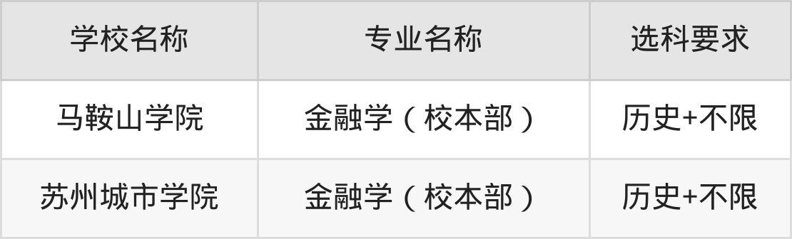 | 无锡太湖学院 | 金融学(江苏省无 锡市) | 物理+不限 |