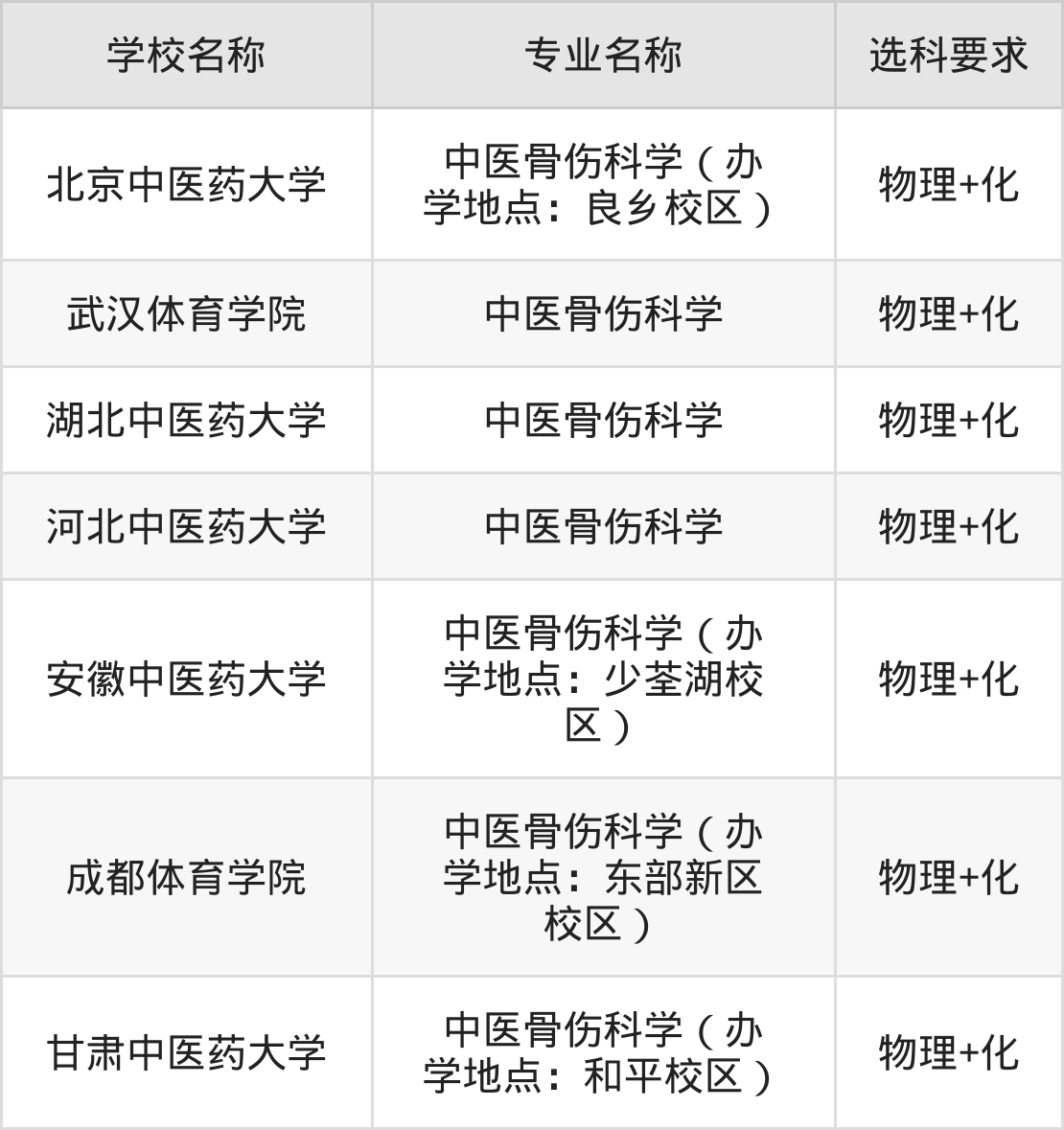 | 黑龙江中医药大学 | 中医骨伤科学 | 物理+生 |