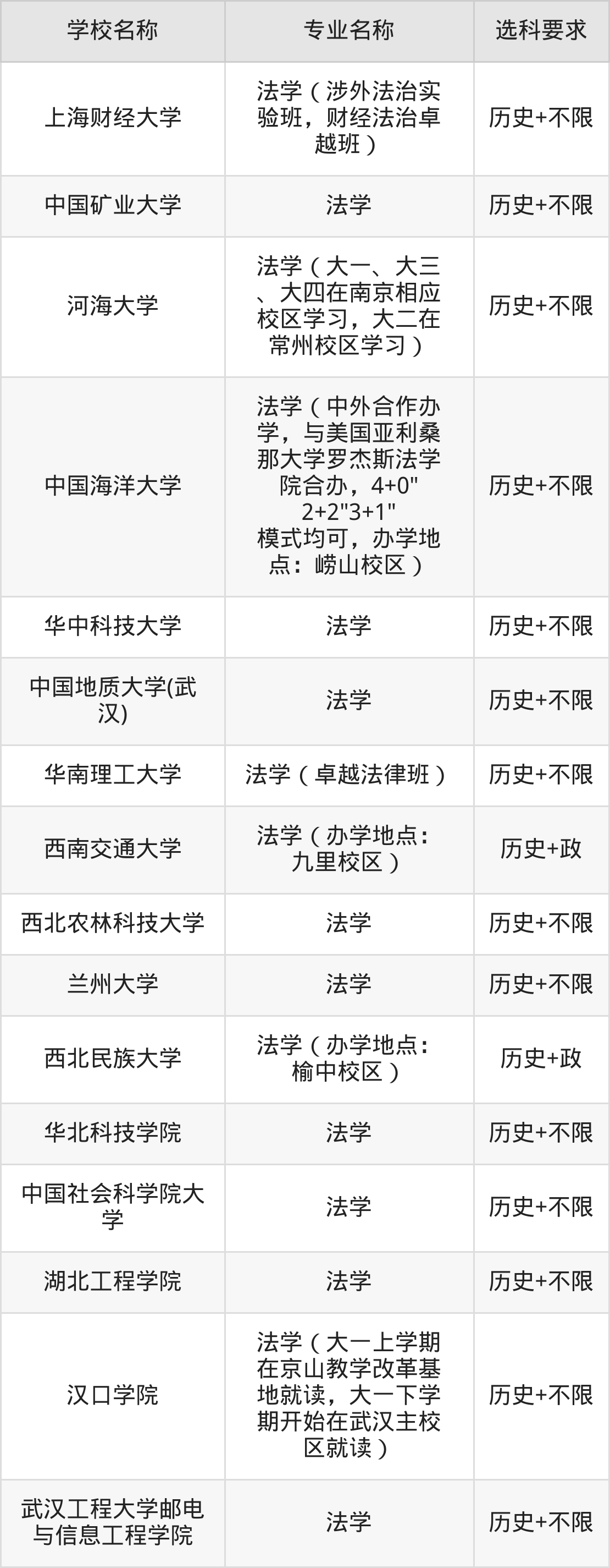 | 湖北经济学院 | 法学(卓越法治拔 尖人才实验班) | 物理+不限 |