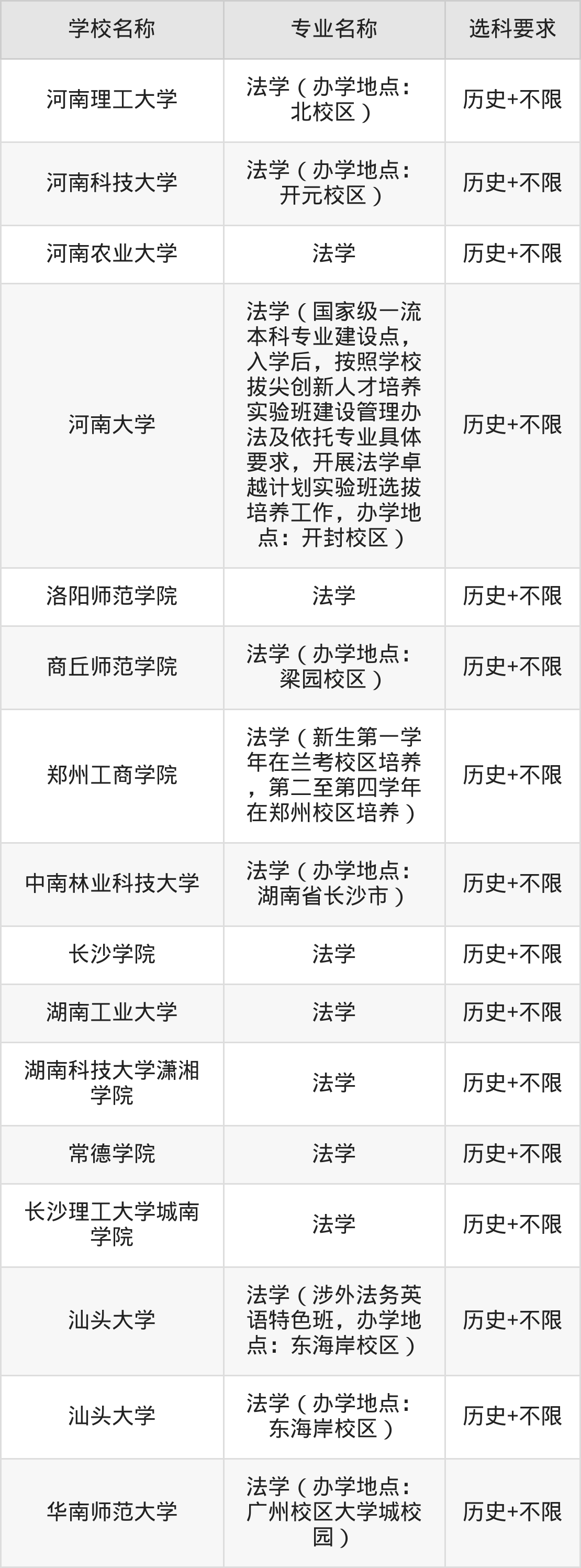| 湖南涉外经济学院 | 法学 | 物理+不限 |