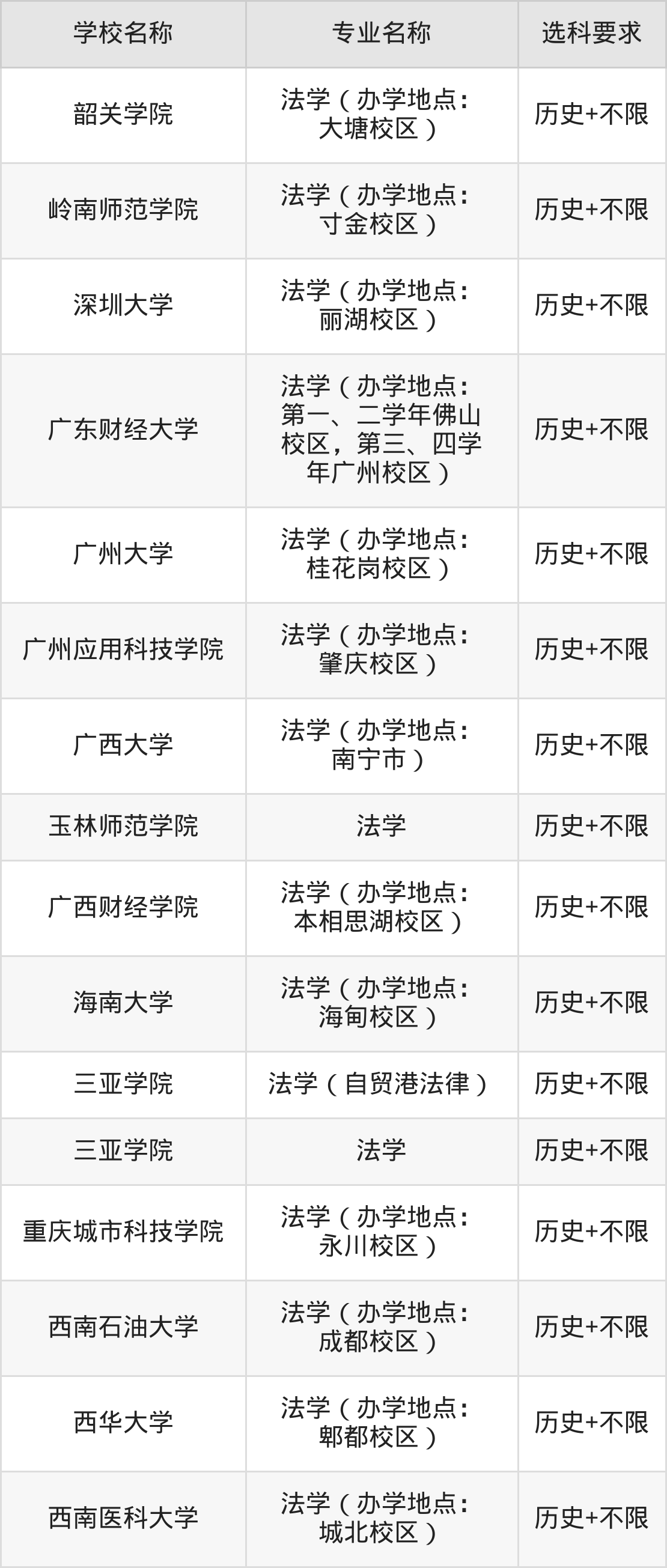 | 西南政法大学 | 法学(办学地点: 渝北校区) | 物理+不限 |