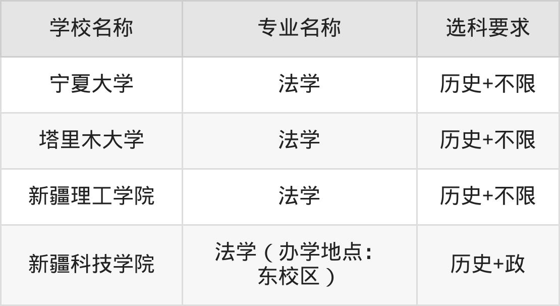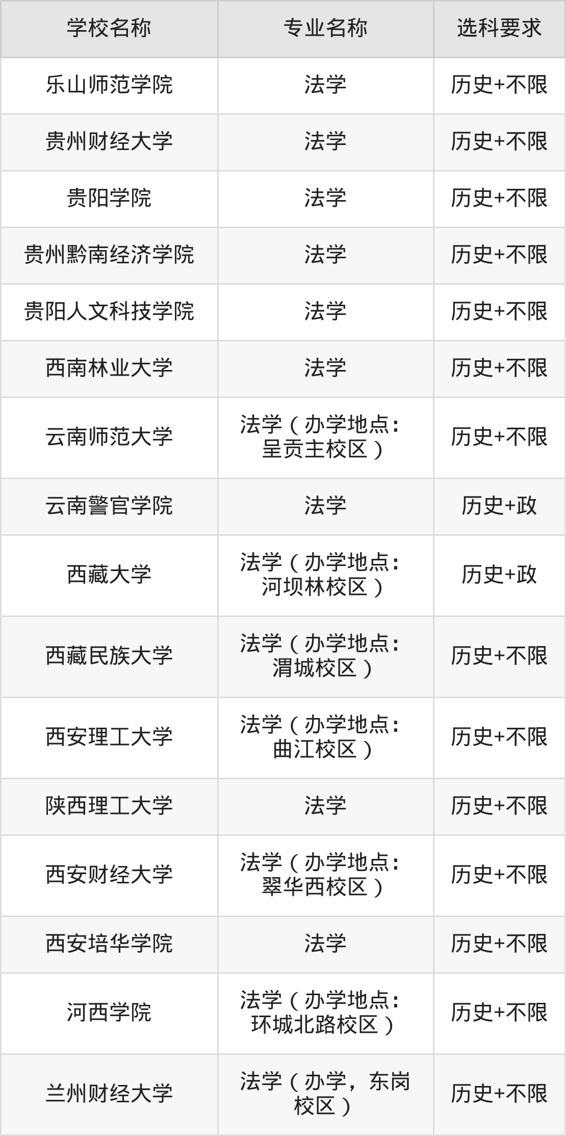 | 新疆政法学院 | 法学 | 物理+不限 |