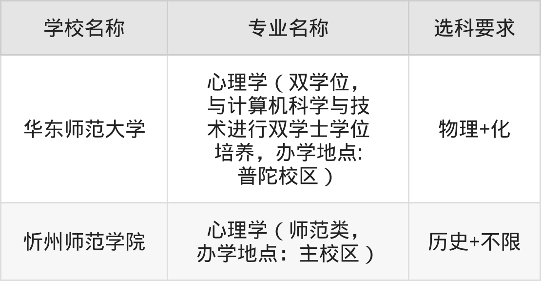 | 华中师范大学 | 心理学(国家公费 师范生,办学地点 :华中师范大学) | 物理+不限 |