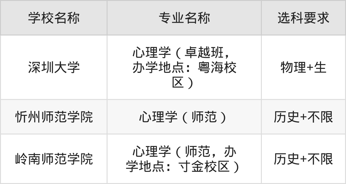 物化地组合的考生不符合这部分学校的选科要求,所以不可以报考这些学校的心理学专业。比如:深圳大学、忻州师范学院、岭南师范学院等。