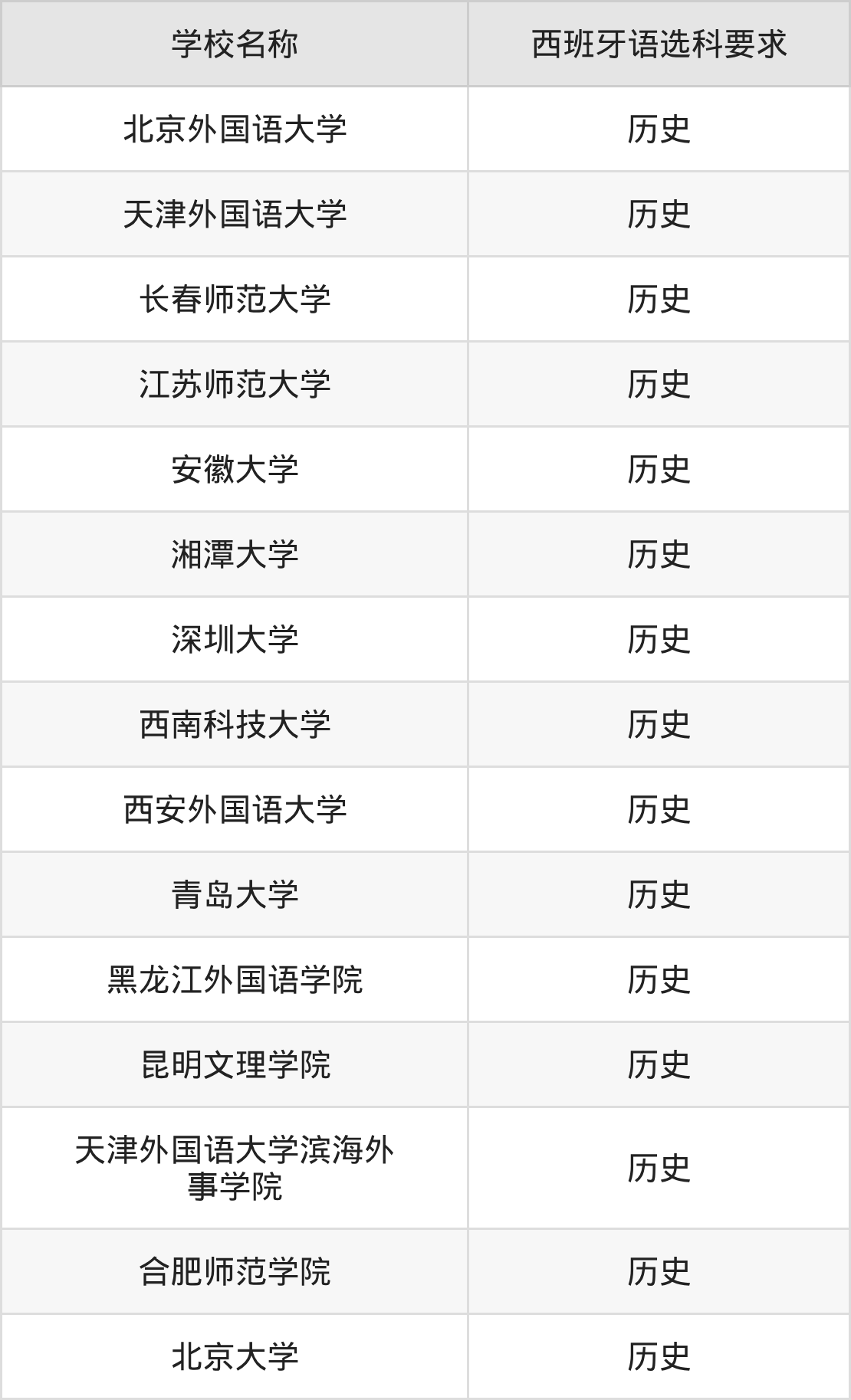 如果你是高中选了“物理、化学、生物”的学生,未来想读西班牙语专业,那么便可以考虑选科要求为“物理”的大连外国语大学、北华大学、上海外国语大学、井冈山大学、汕头大学、吉林外国语大学、广东外语外贸大学等学校。