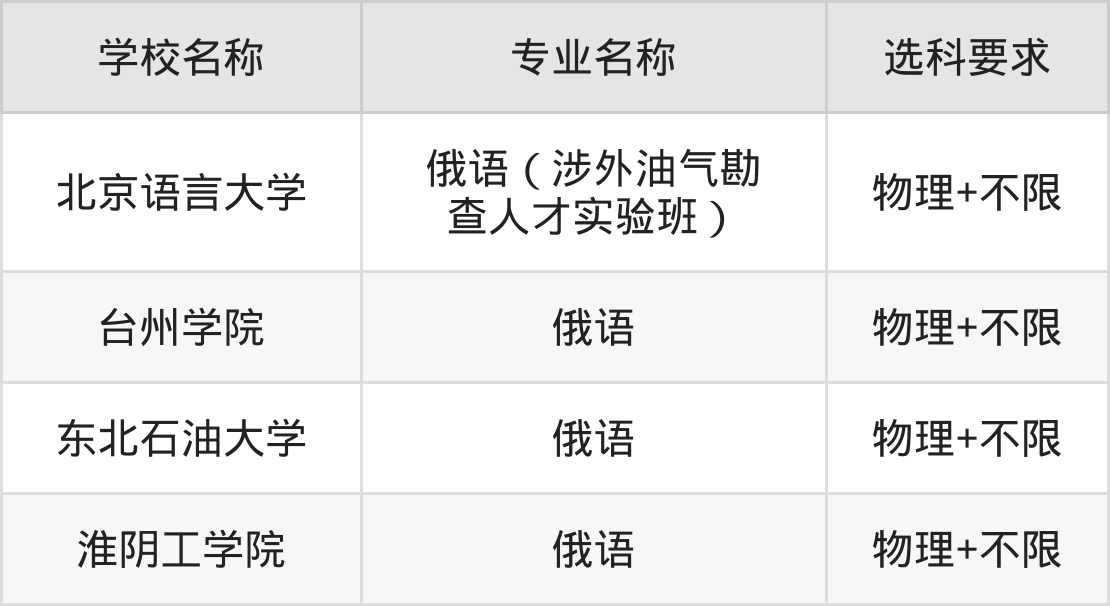 | 哈尔滨石油学院 | 俄语(零起点) | 历史+不限 |