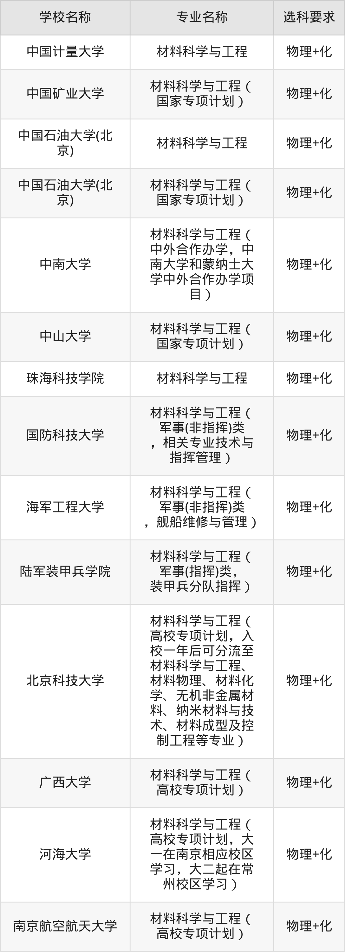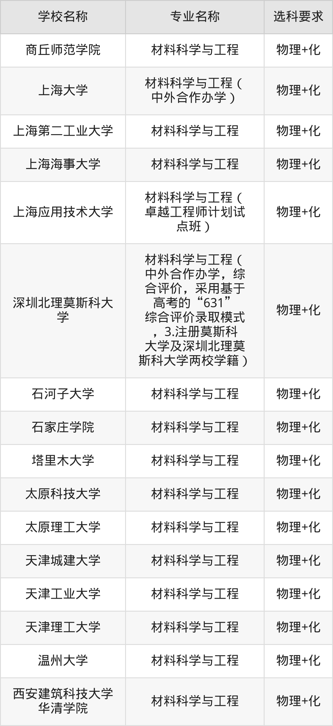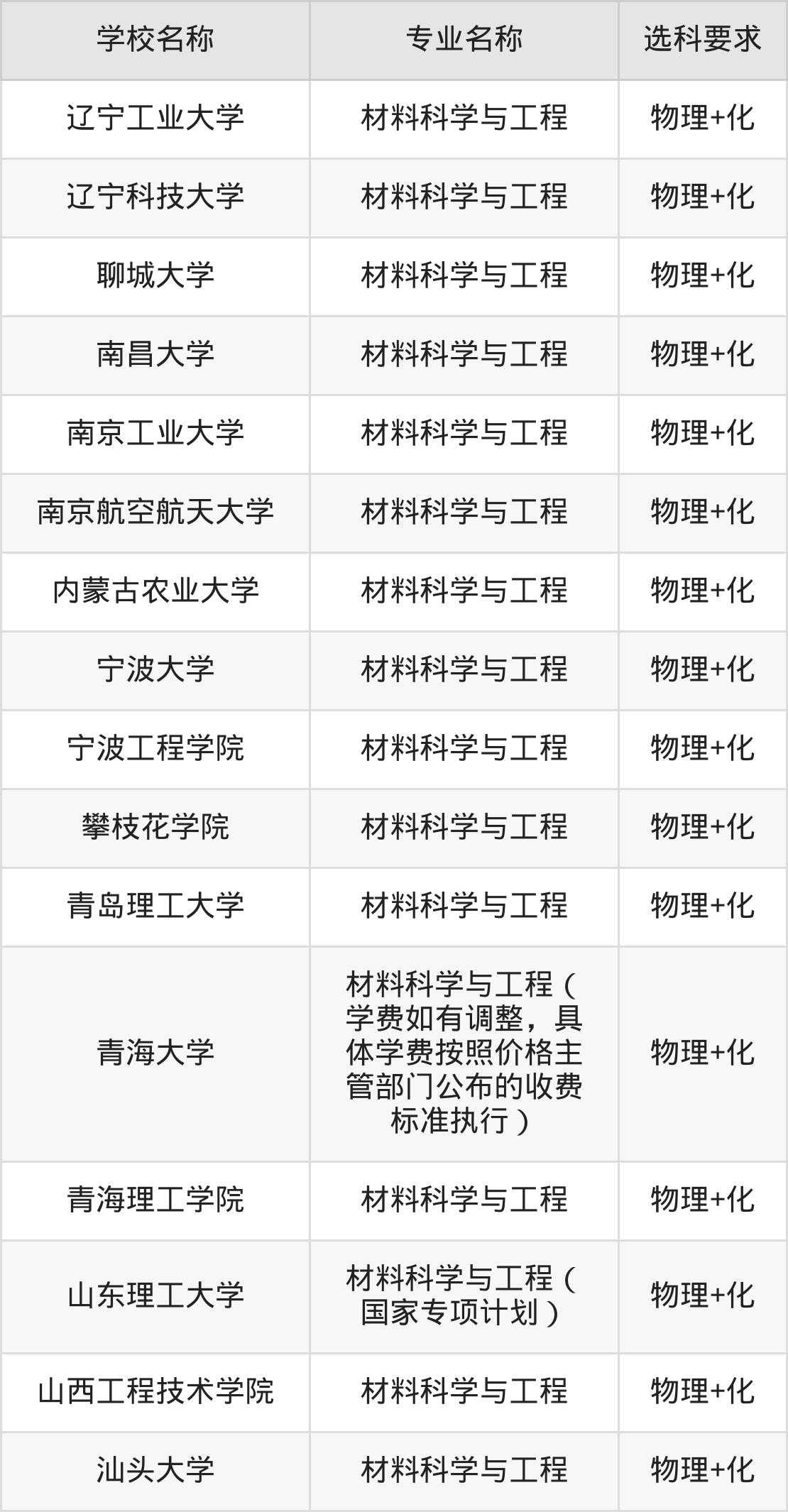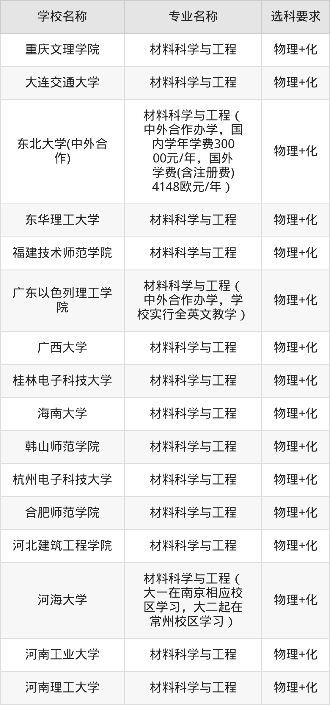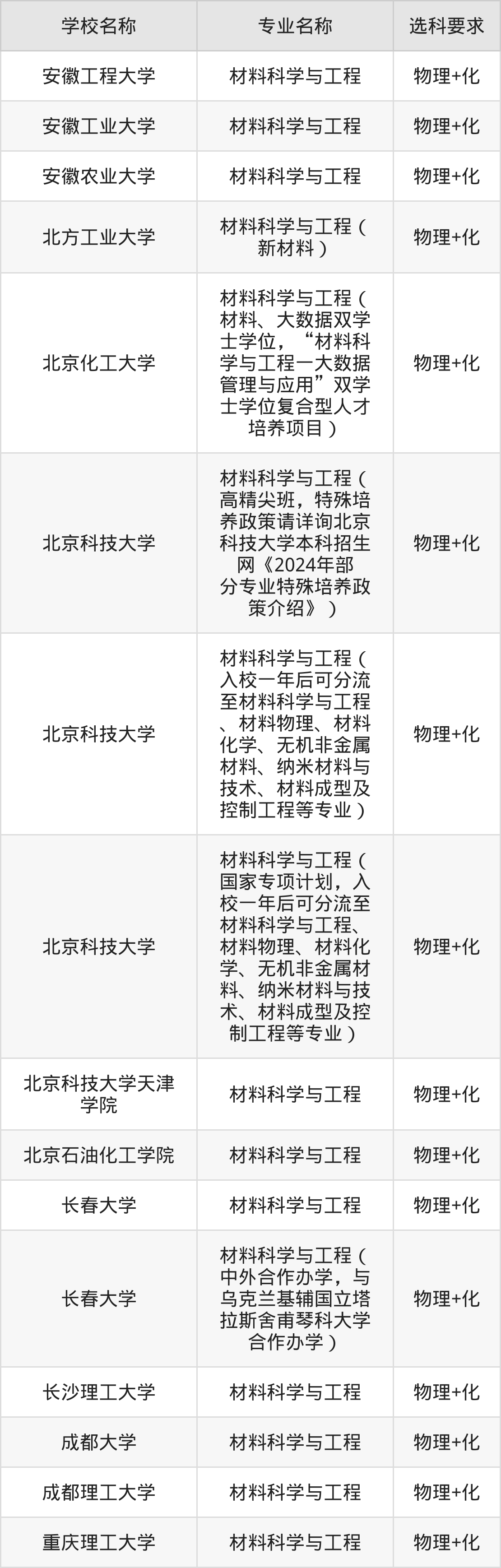物政地组合的考生不符合这部分学校的选科要求,所以不可以报考这些学校的材料科学与工程专业。比如:安徽工程大学、安徽工业大学、安徽农业大学、北方工业大学、北京化工大学、北京科技大学、北京科技大学天津学院等。