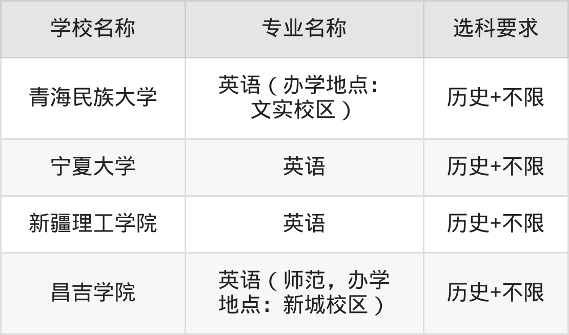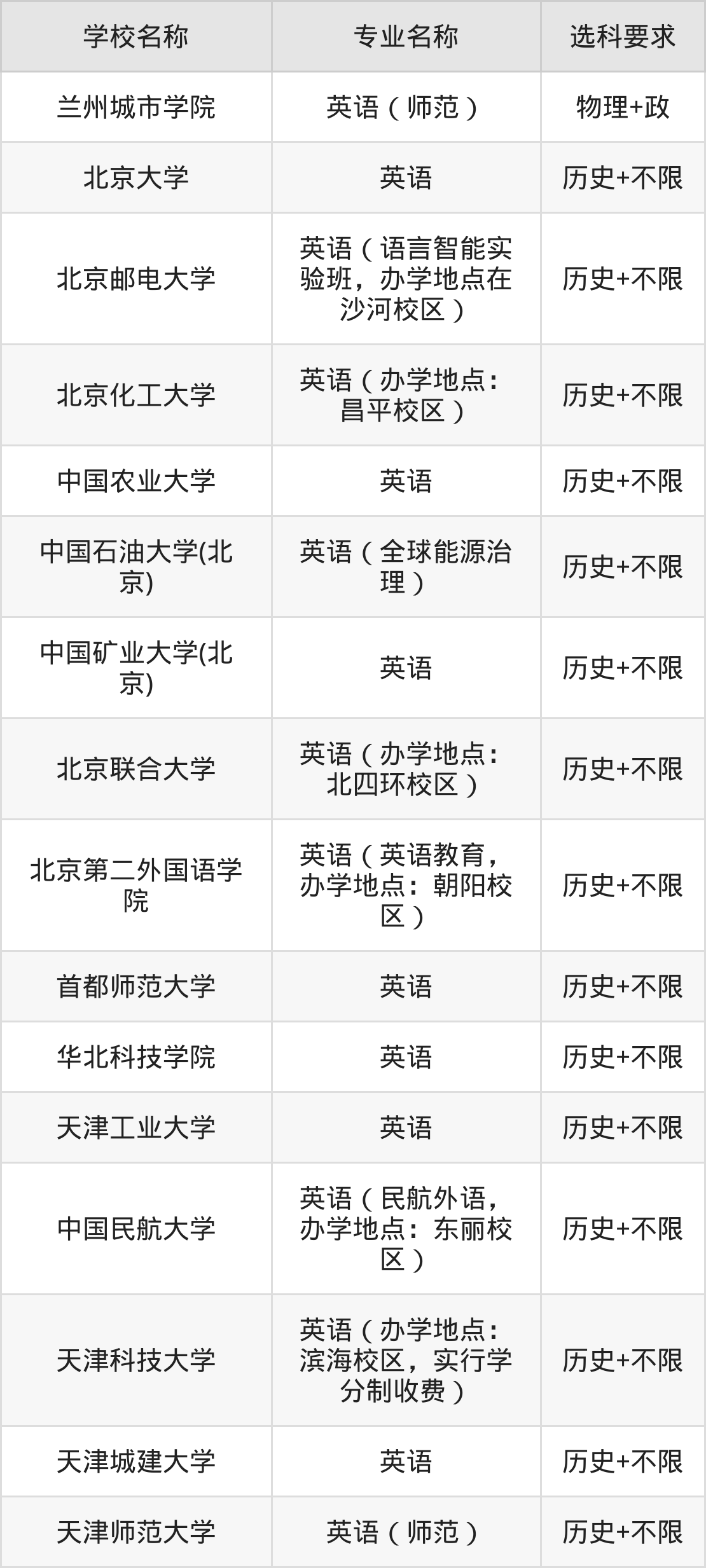 | 吉林外国语大学 | 英语(英口双语, 日语零起点) | 物理+不限 |