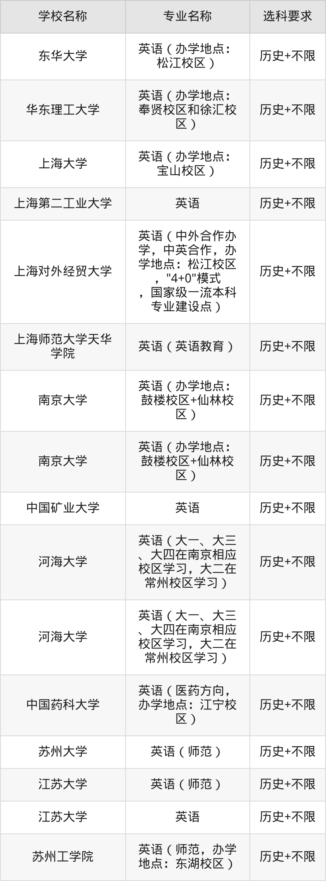 | 江苏师范大学科文 学院 | 英语 | 物理+不限 |