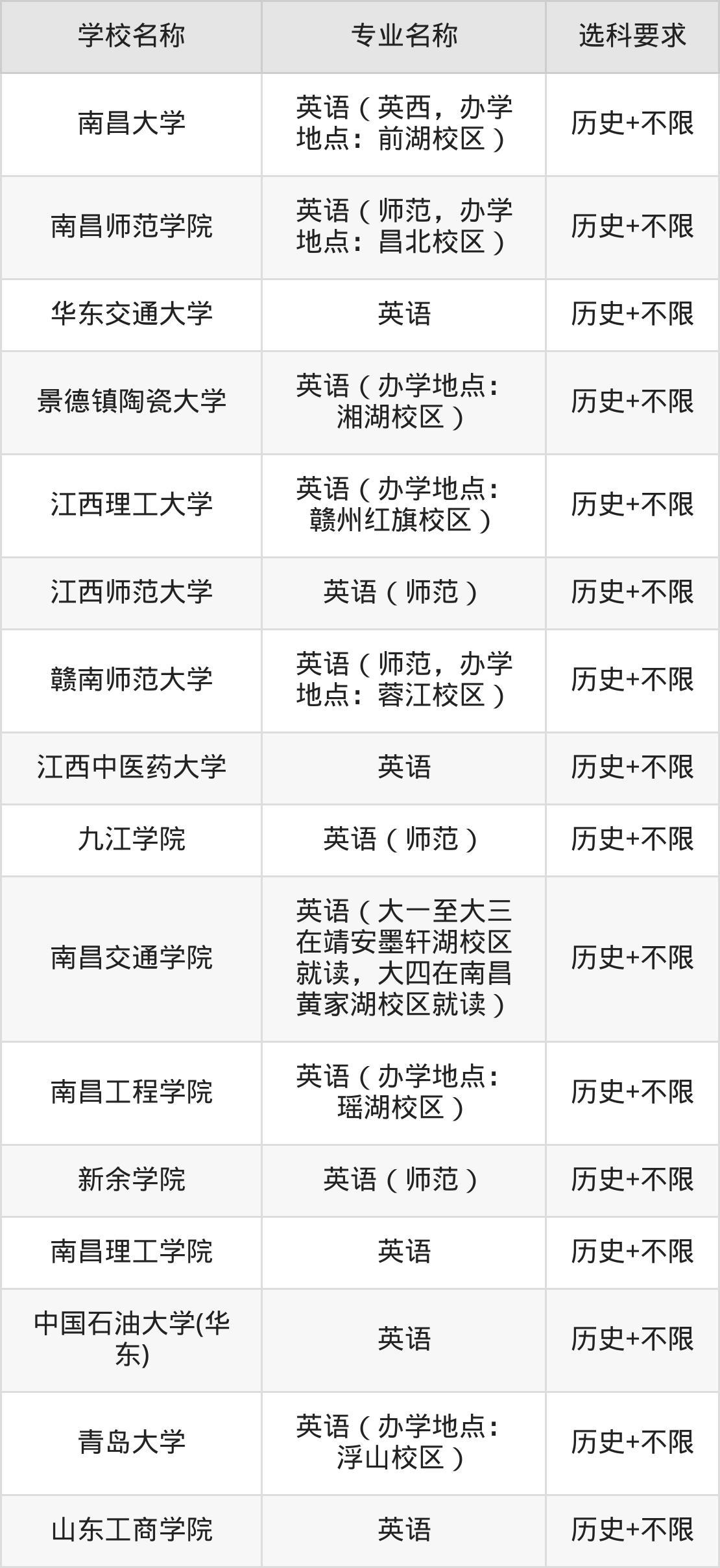 | 宜春学院 | 英语(师范) | 物理+不限 |
