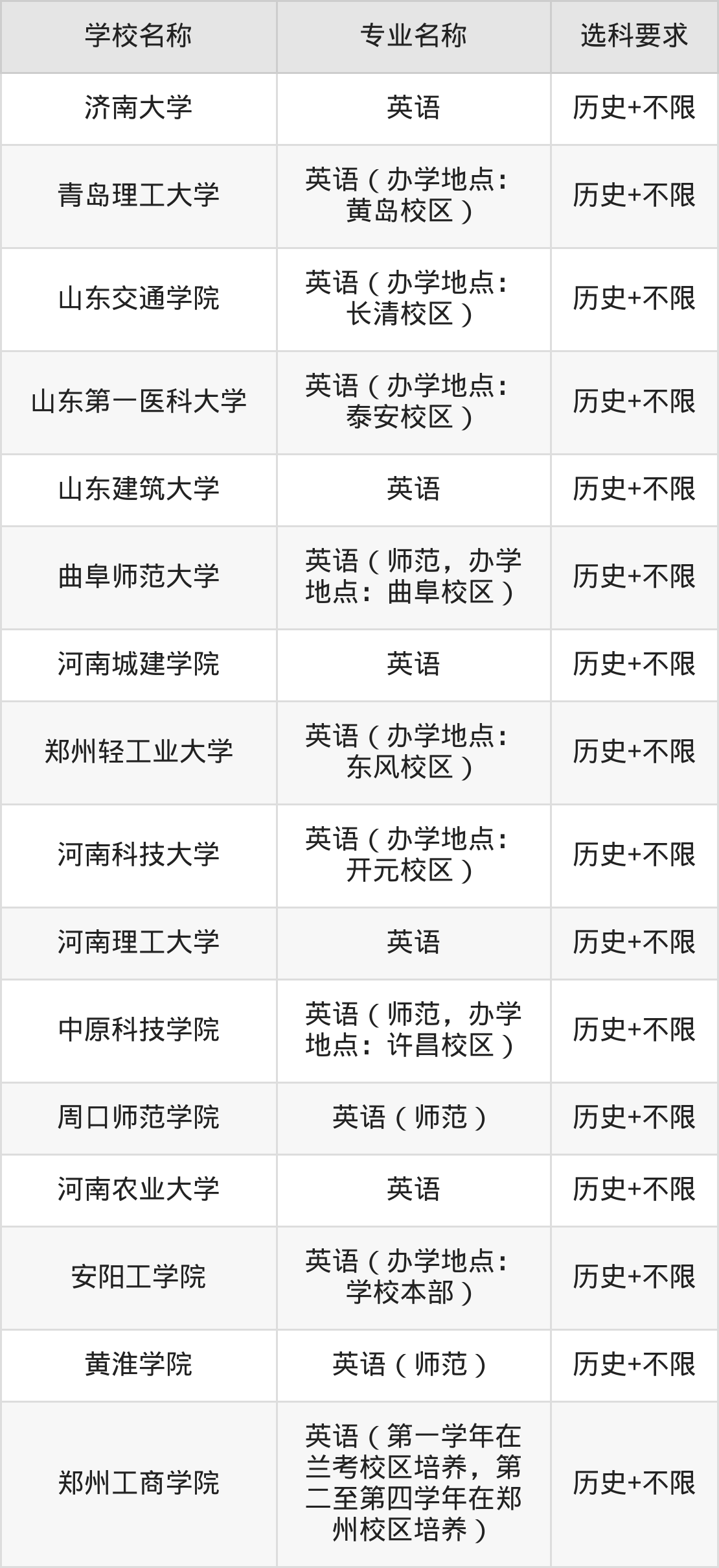 | 山东师范大学 | 英语(师范) | 物理+不限 |