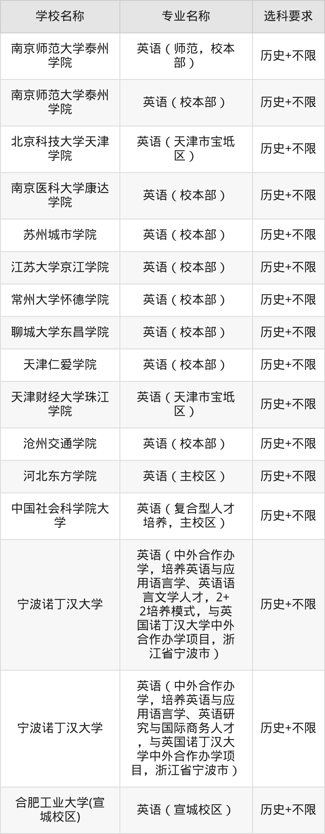 | 扬州大学广陵学院 | 英语(校本部) | 物理+不限 |
