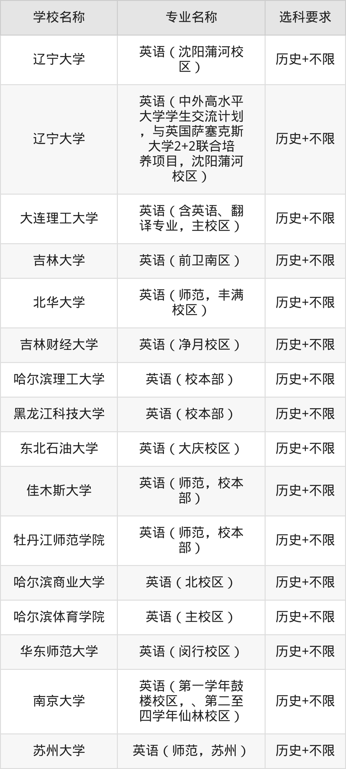 | 吉林外国语大学 | 英语(校本部) | 物理+不限 |