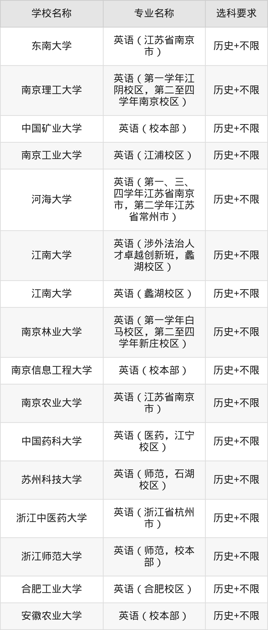 | 江苏师范大学科文 学院 | 英语(校本部) | 物理+不限 |