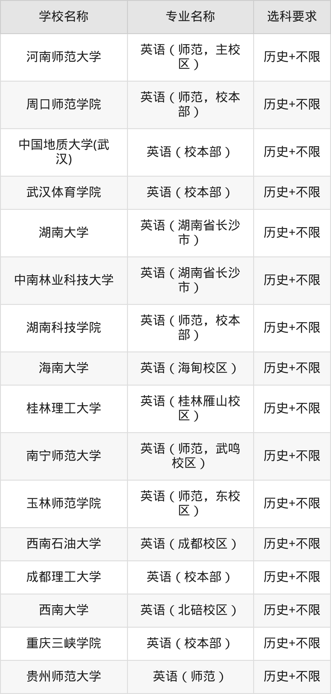 | 湖北大学 | 英语(第一学年阳 逻校区,第二至第 四学年武昌校区) | 物理+不限 |