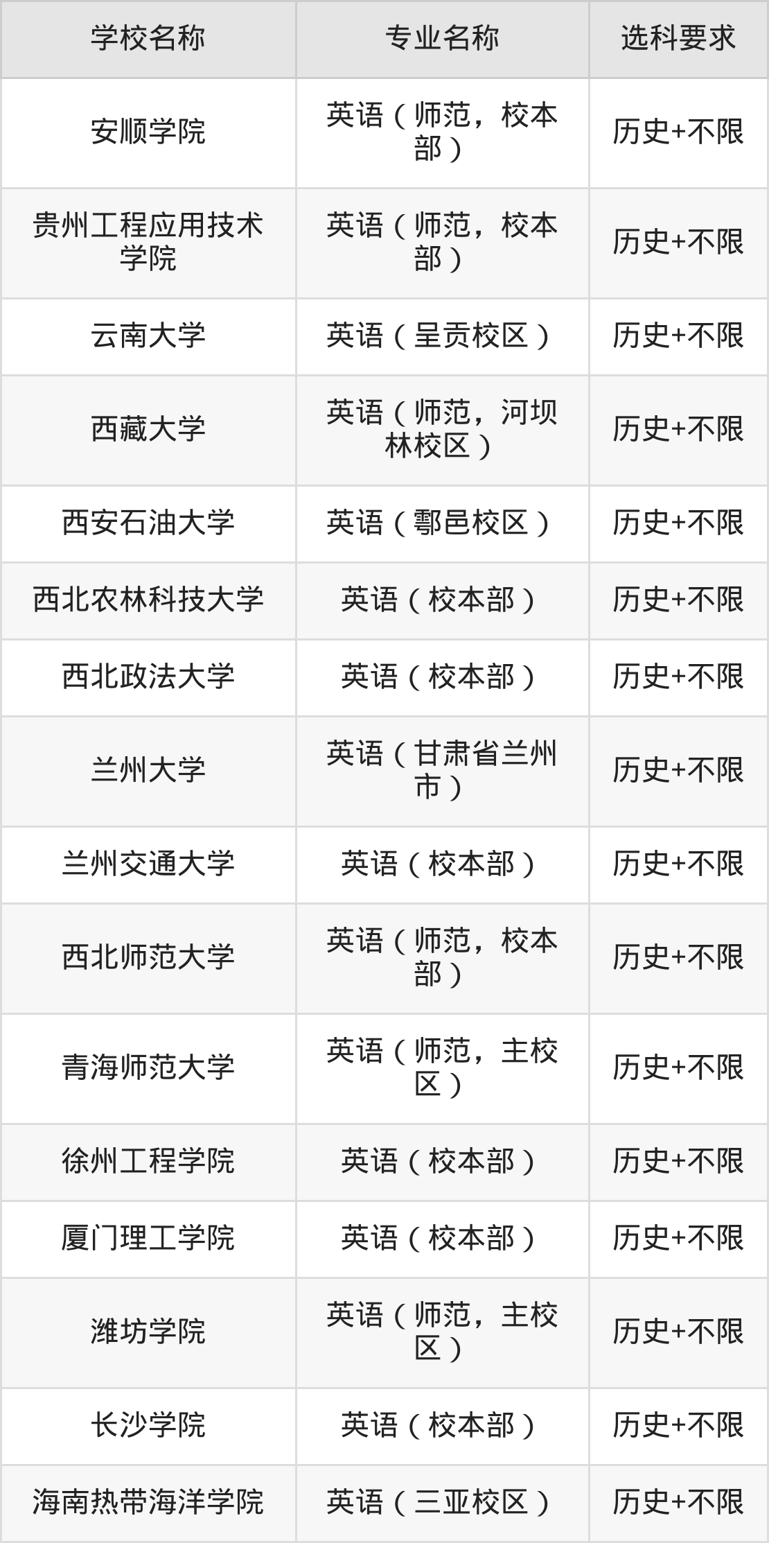 | 西安外国语大学 | 英语(长安校区) | 物理+不限 |