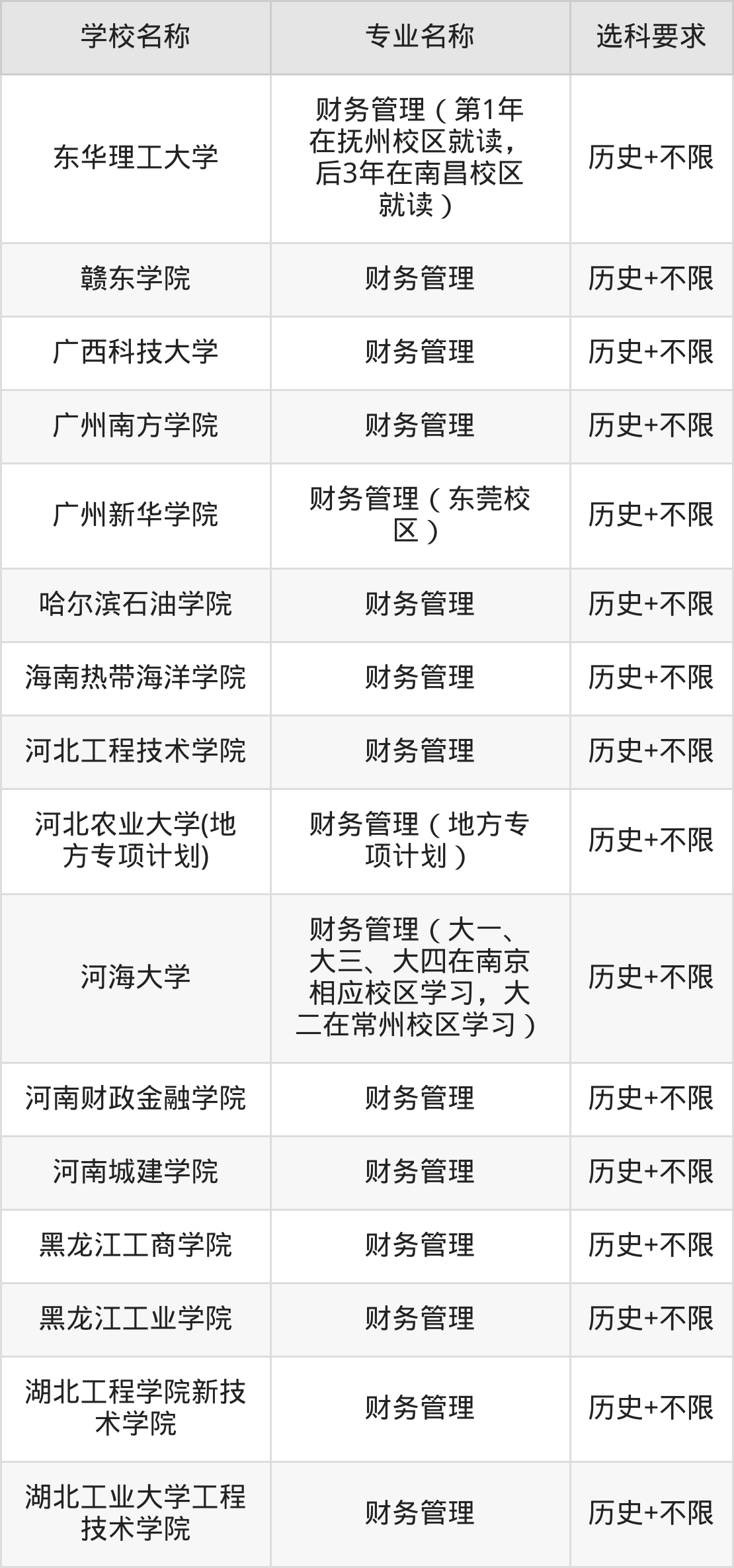 | 哈尔滨剑桥学院 | 财务管理 | 物理+不限 |