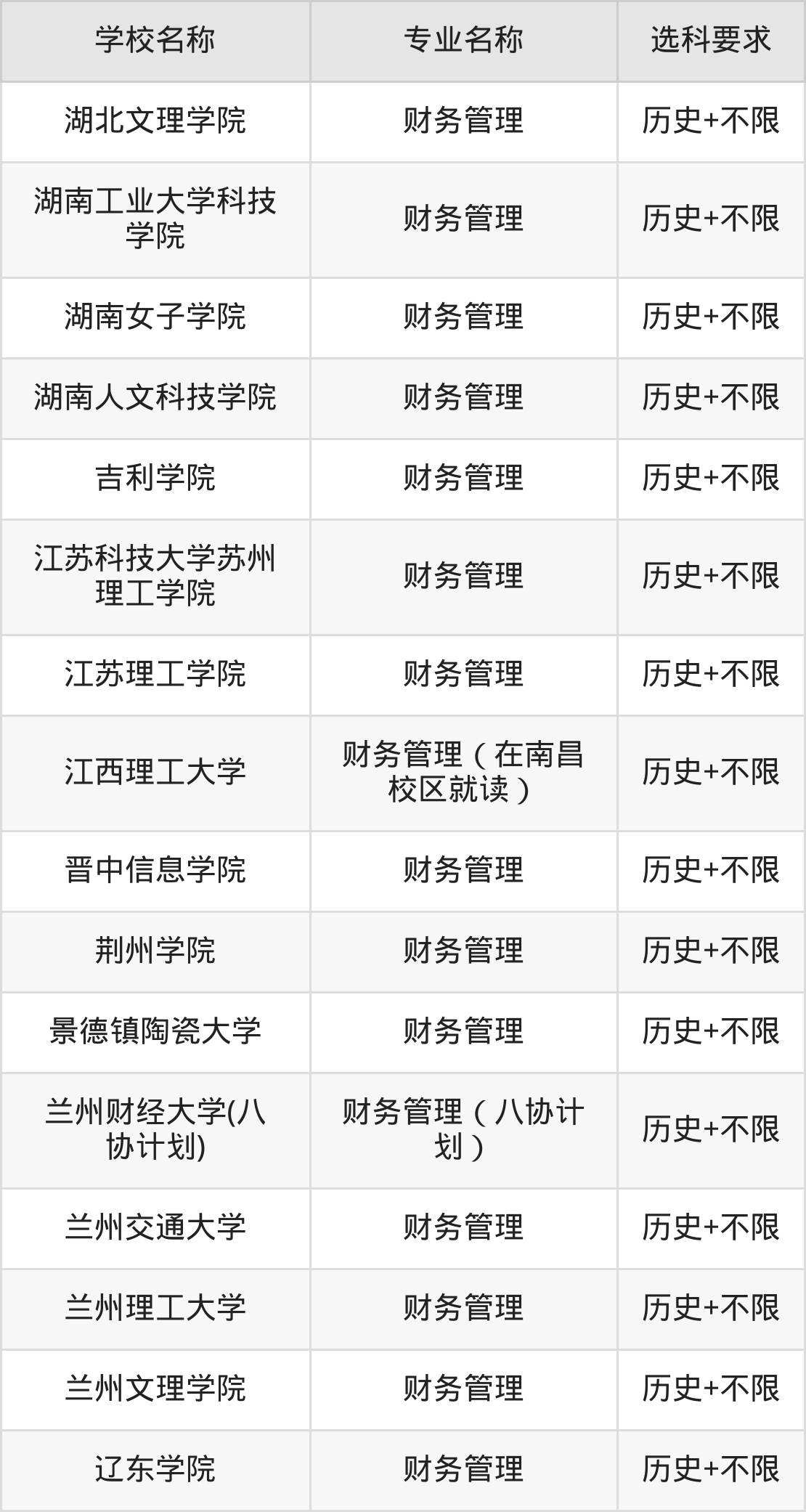 | 绥化学院 | 财务管理 | 物理+不限 |