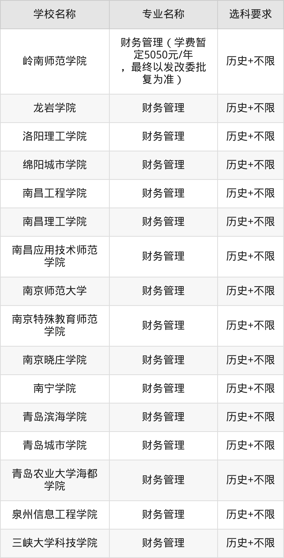 | 三明学院 | 财务管理(国际课 程项目) | 物理+不限 |