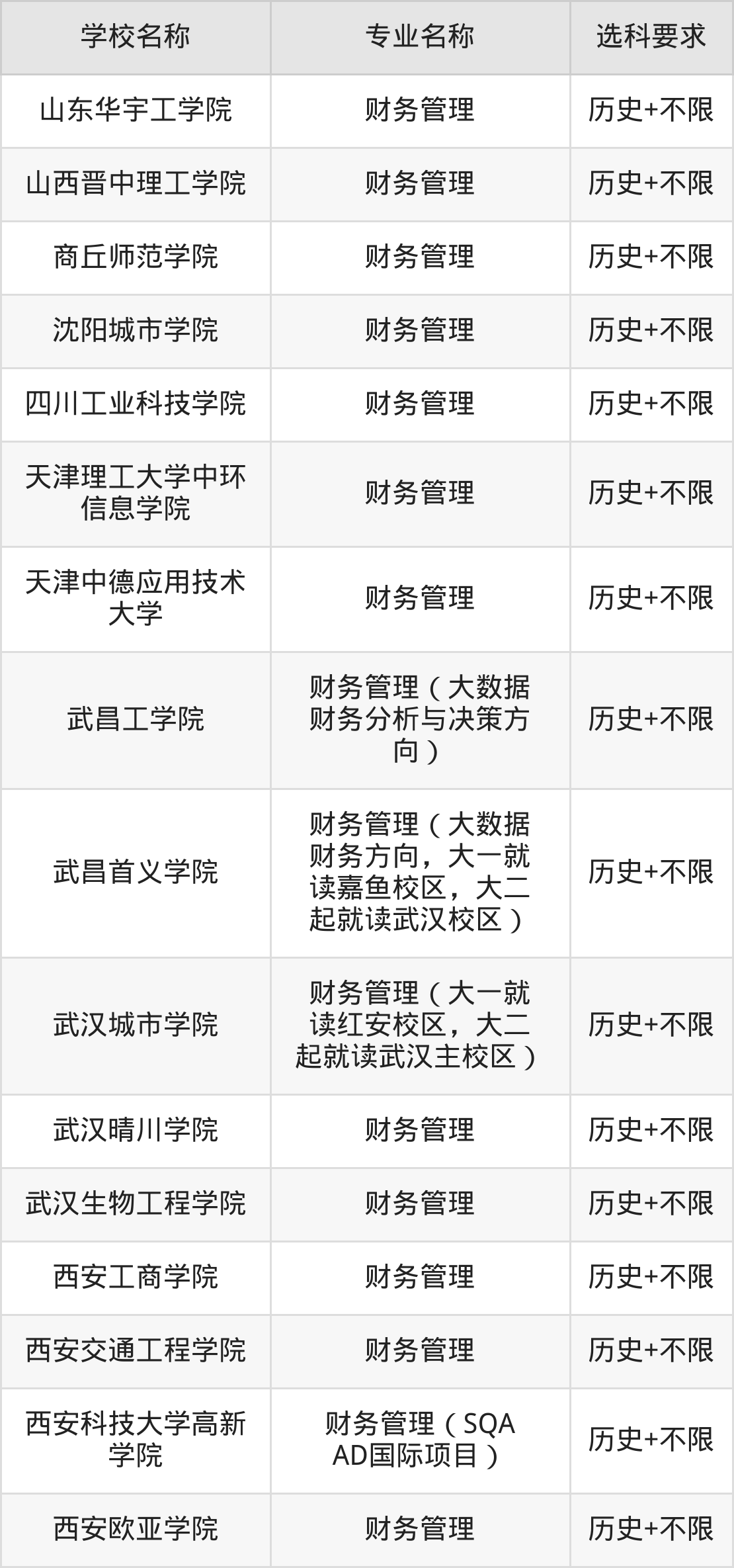 | 哈尔滨信息工程学 院 | 财务管理 | 物理+不限 |